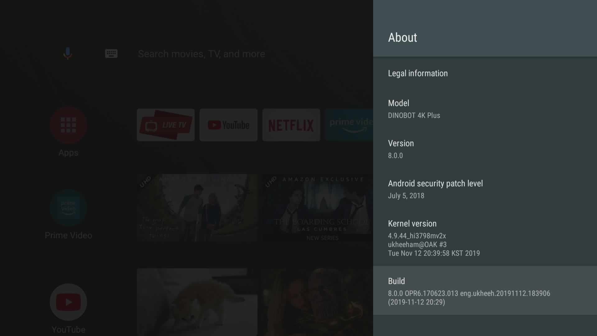 - Versión del sistema: Android TV 8 con Kernel 4.9.44 (12-11-2019).