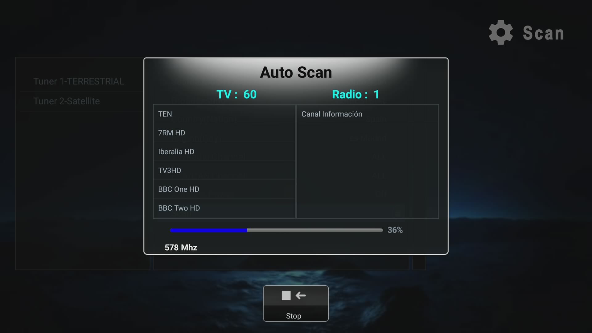 - Busqueda canales automatica: Tiempo 8 minutos 32 segundos