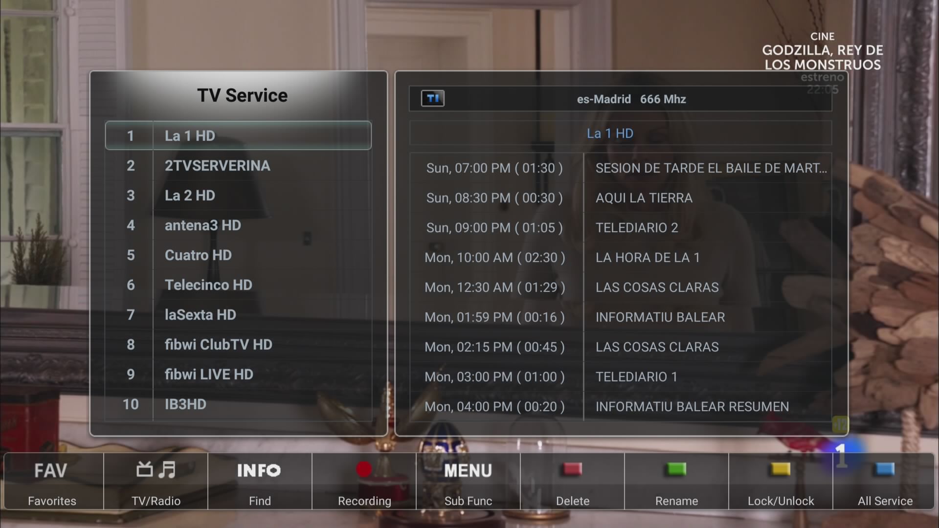 - Gestión de canales: Lista en vivo con búsqueda por nombre, EPG, Favoritos y gestor para programar grabaciones.