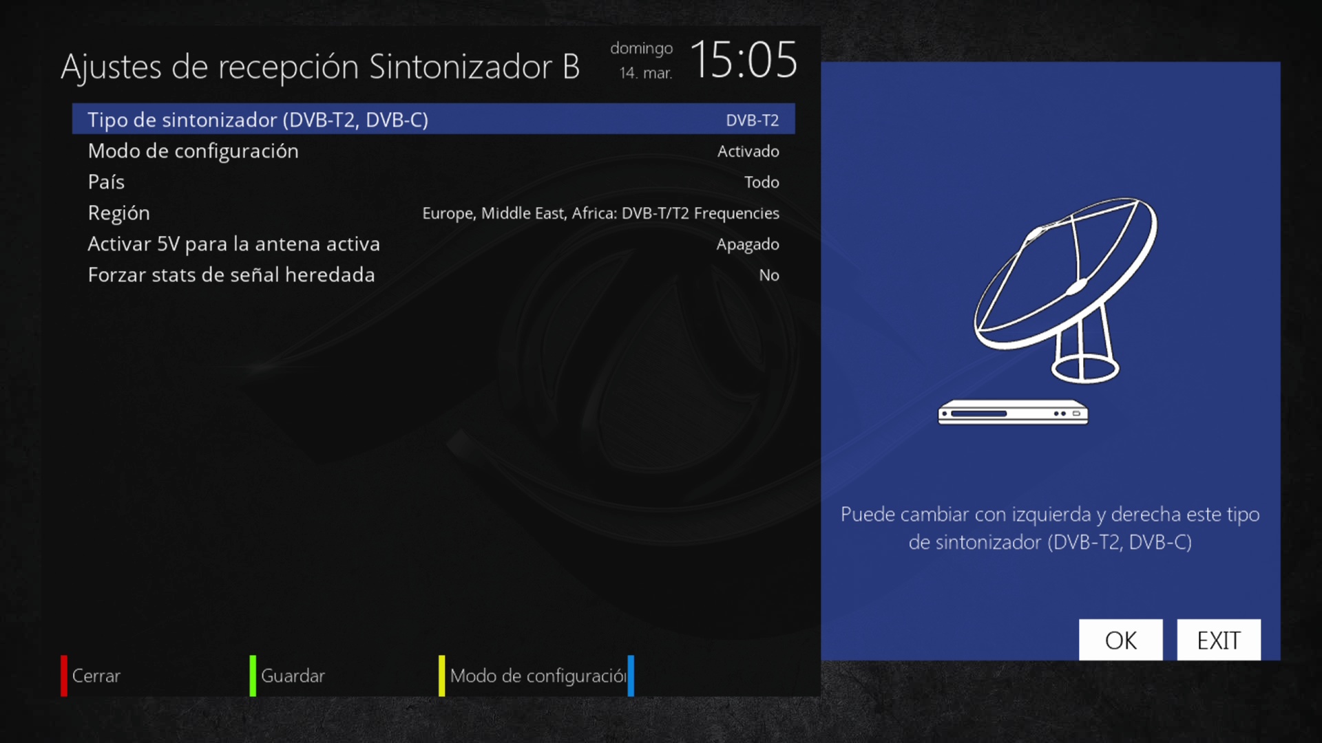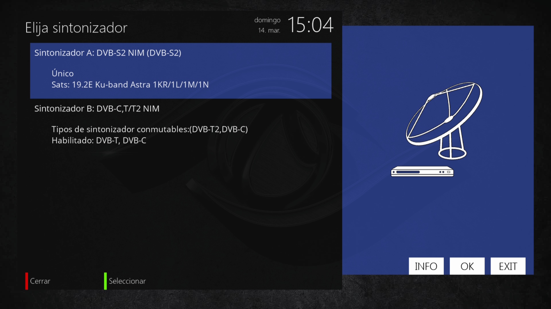El modelo de Tuner que utiliza es DVB-S2, con las siguientes capacidades
