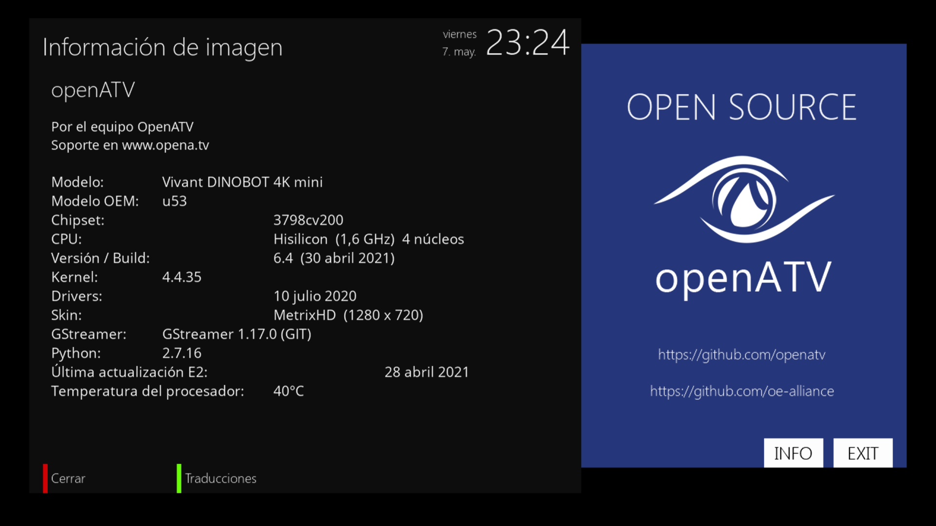 - Version del sistema de fabrica: OpenATV dependiendo del sistema de fabricacion, en nuestro caso version 6.1.