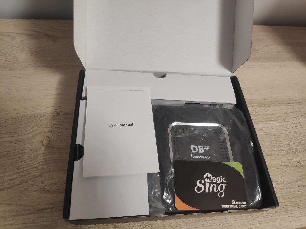 Este receptor Dinobot U5 mini 4K se presenta en una caja de carton tipica de carton en tonos negros con serigrafia de modelo y características del mismo, en el interior nos encontramos con: