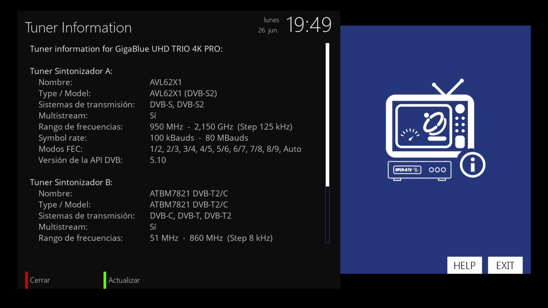- Compatible con plugin enigma2: Kodi, stalker, hbbtv, transcodificacion, pip