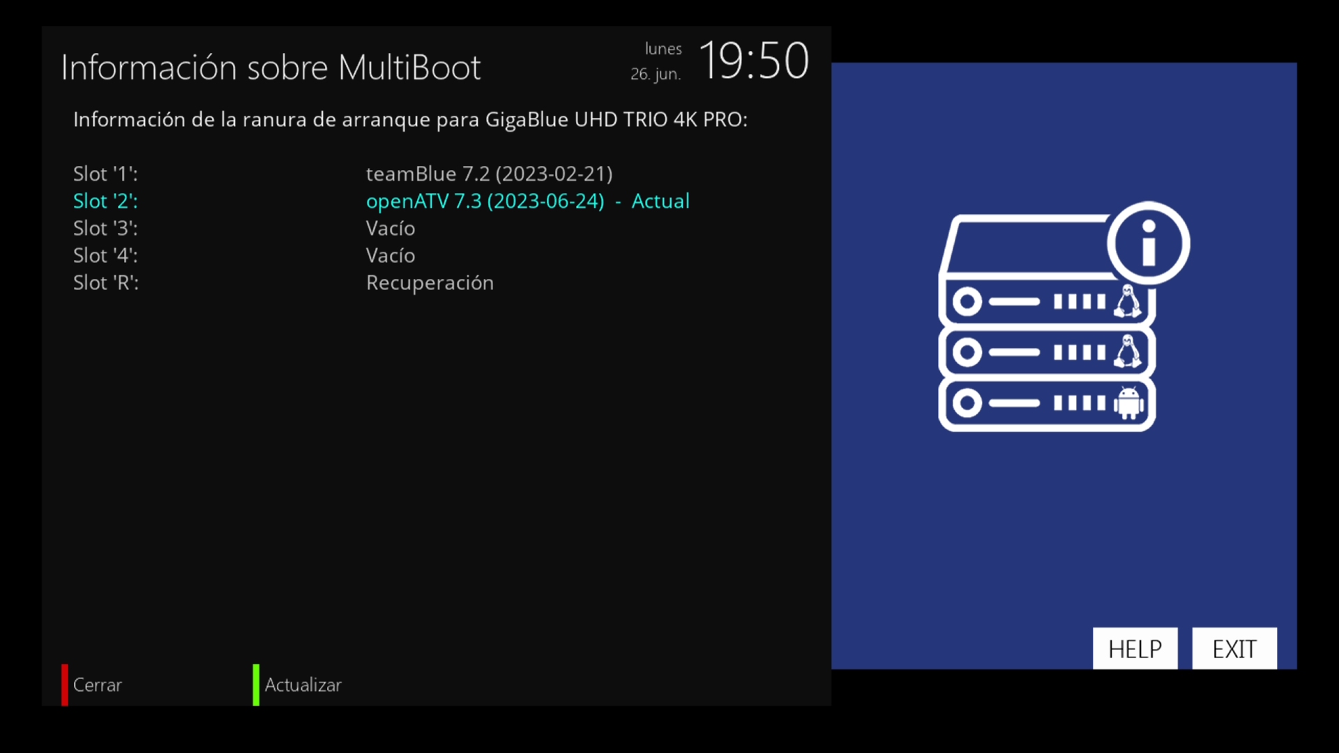 En este aspecto comentar que la flash del receptor se particiona para ubicar enigma2 (podemos instalar diferentes imagenes en varias particiones), lo que se denomina multiboot.