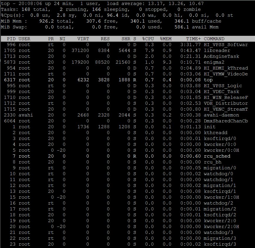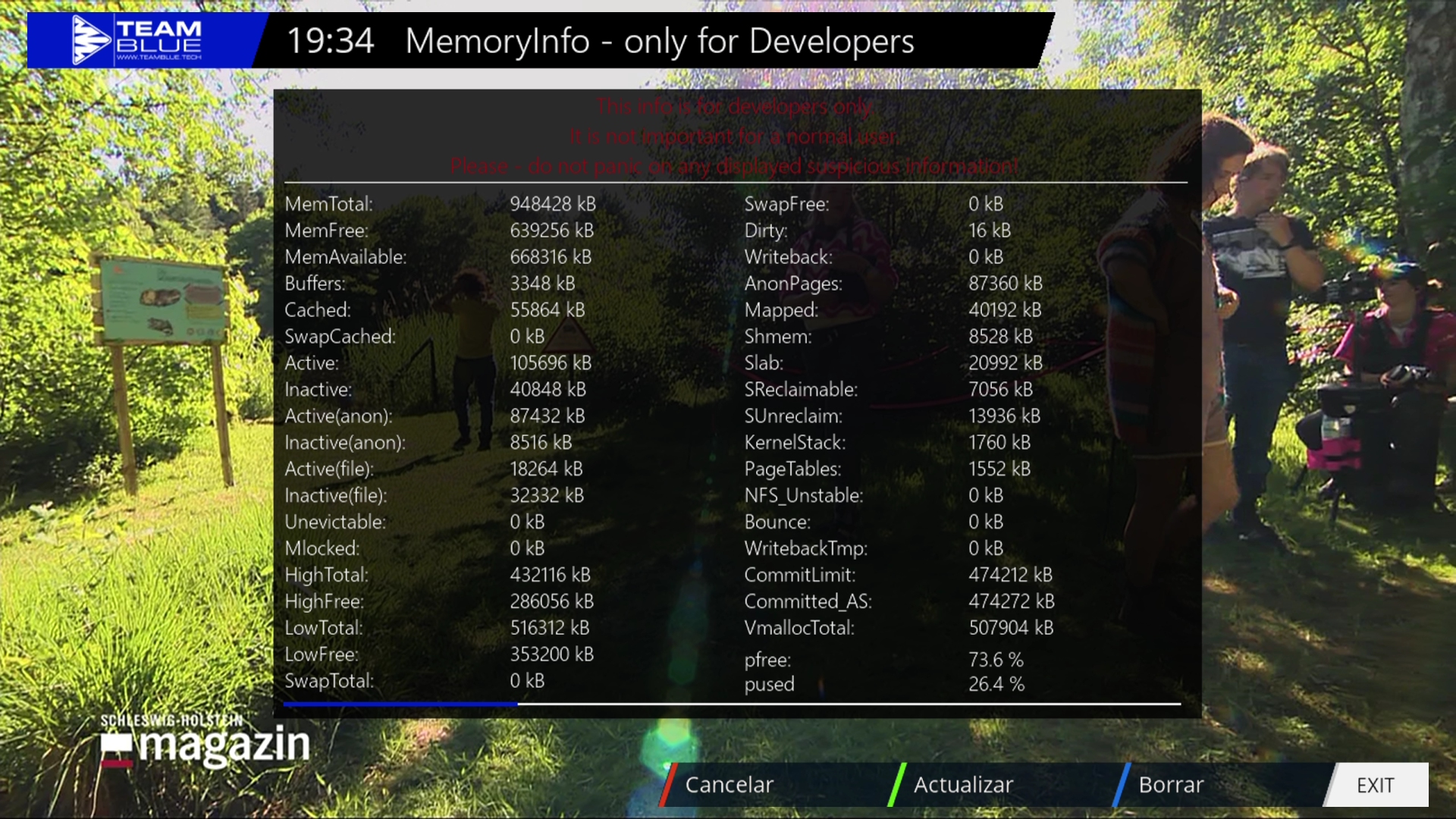 El sistema Enigma2 Reserva parte de los 1 GB de ram para sus procesos internos en esta captura podemos ver como se reparte: