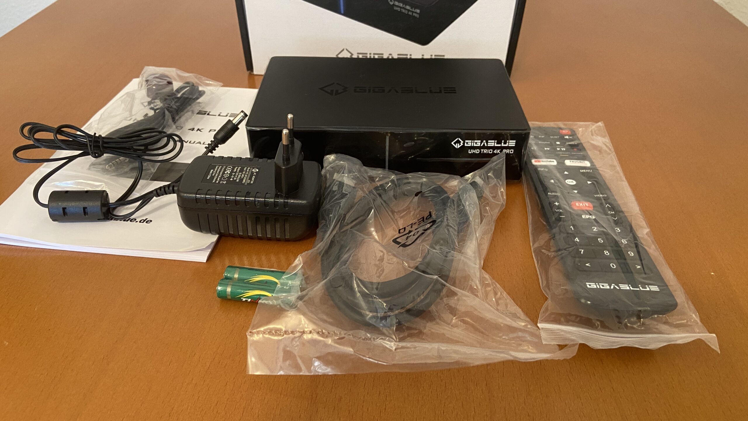 Gigablue TRIO 4k PRO se presenta en una caja de carton tipica, en colores blancos, de bastante buena calidad, y en su interior nos encontramos: