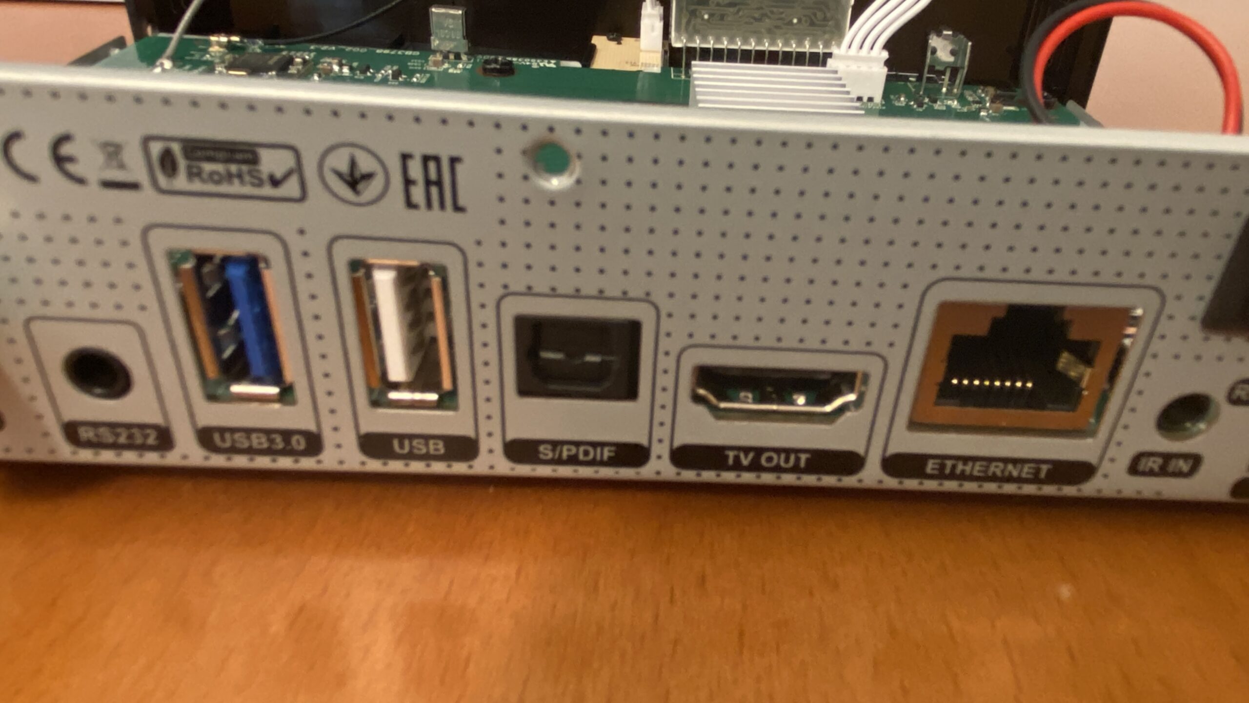 El receptor enigma2 Gigablue TRIO 4k PRO lleva integrado una memoria emmc como almacenamiento interno de 8 gb, 1 gb de Ram, puerto usb 2.0 y puerto usb 3.0.