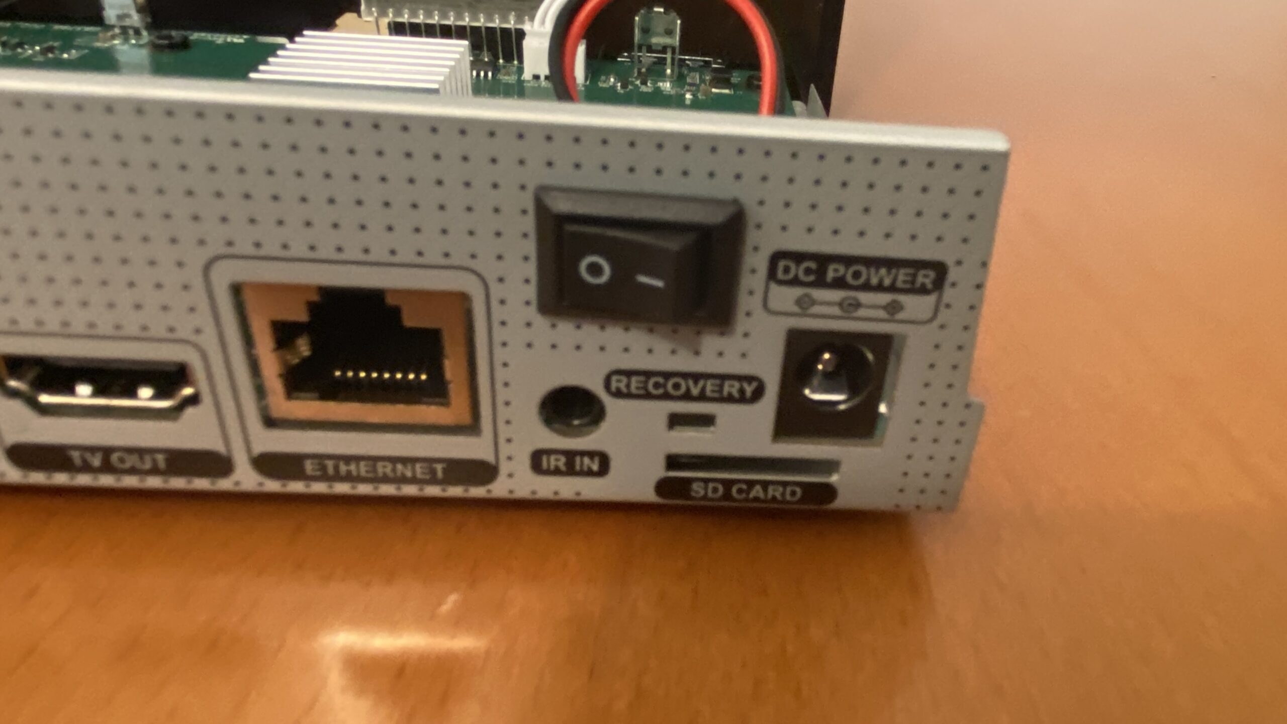 En la parte posterior es donde se hallan el grueso de conectores perifericos, ubicados de izquierda a derecha, tuner SAT y TDT/C, salida rs232, usb 3.0, usb 2.0, entrada spif, salida HDMI, entrada ethernet, IR in, boton de apagado, entrada de corriente. entrada tarjeta sd.
