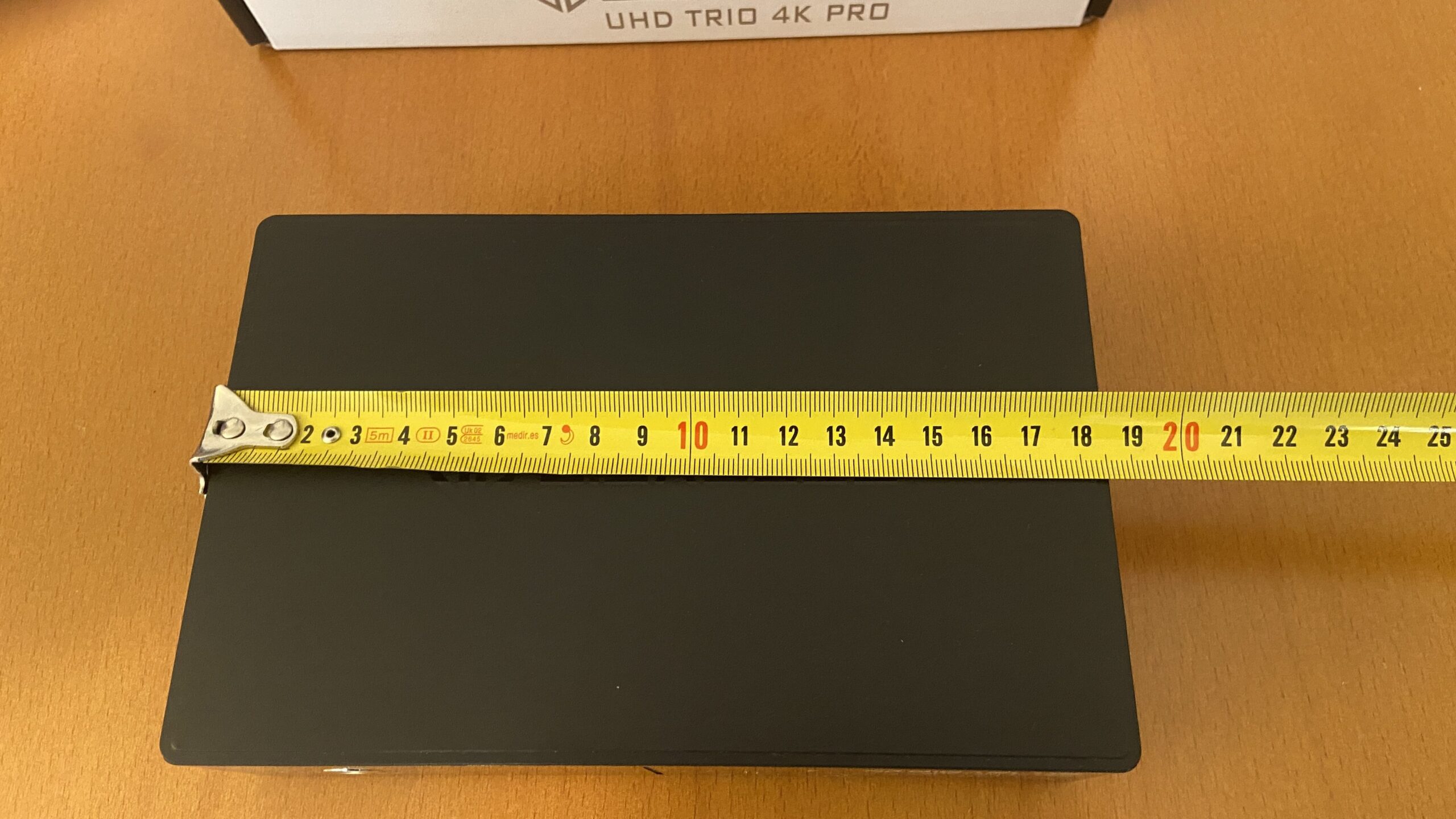 El receptor Gigablue TRIO 4k PRO tiene un diseño tipo rectangular con aristas ligeramente redondeadas, en color negro, siendo un receptor de los que tienen mas dimension del mercado, donde nos ha sorprendido la calidad de los materiales y diseño sobrio pero muy elegante.