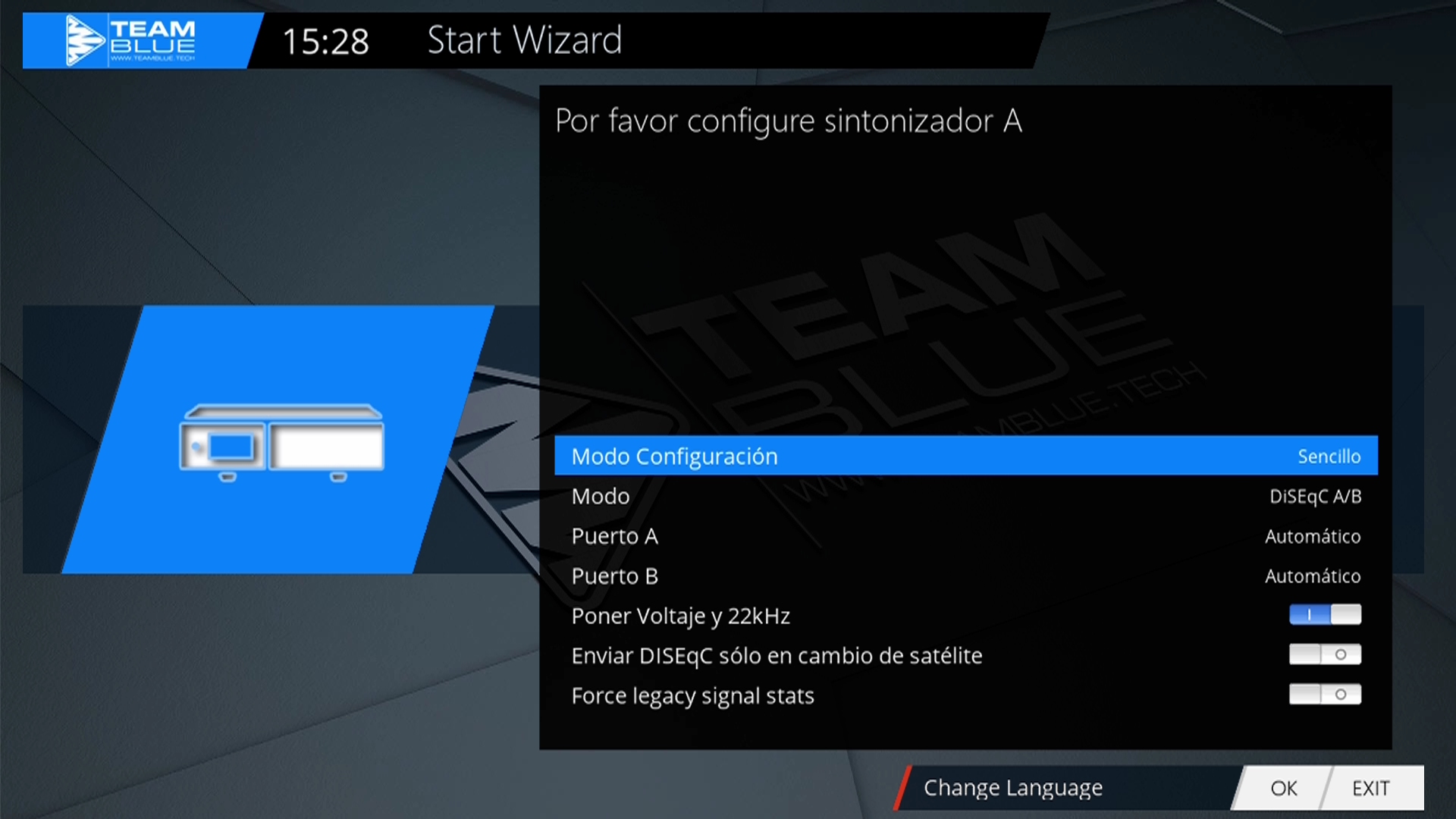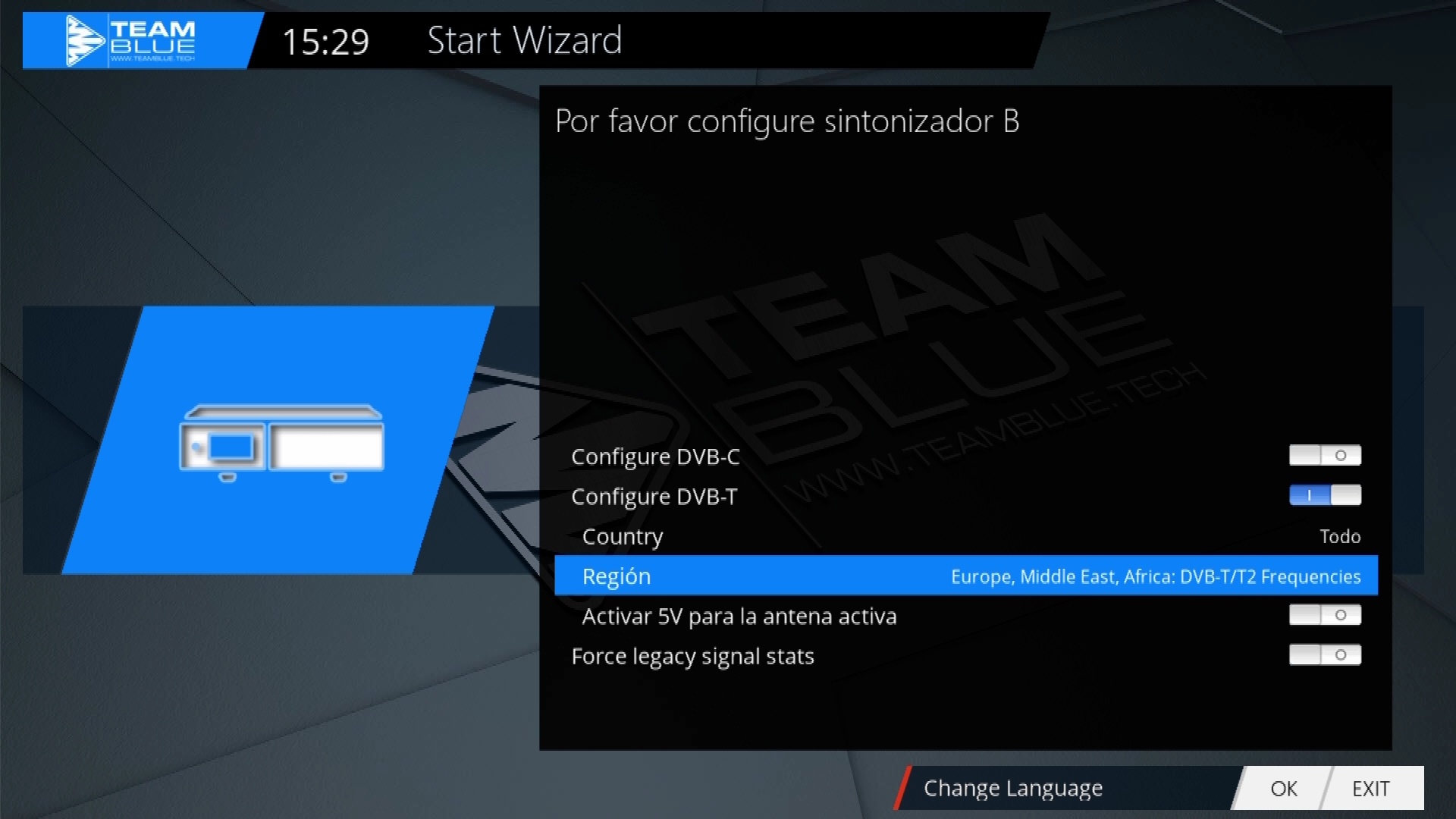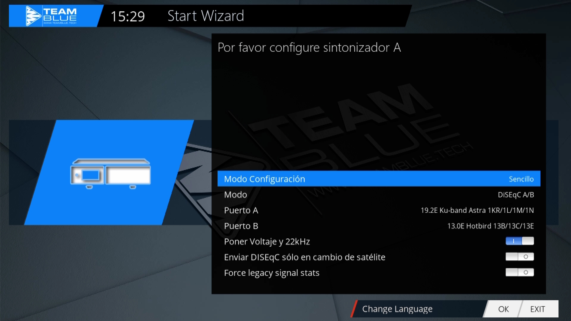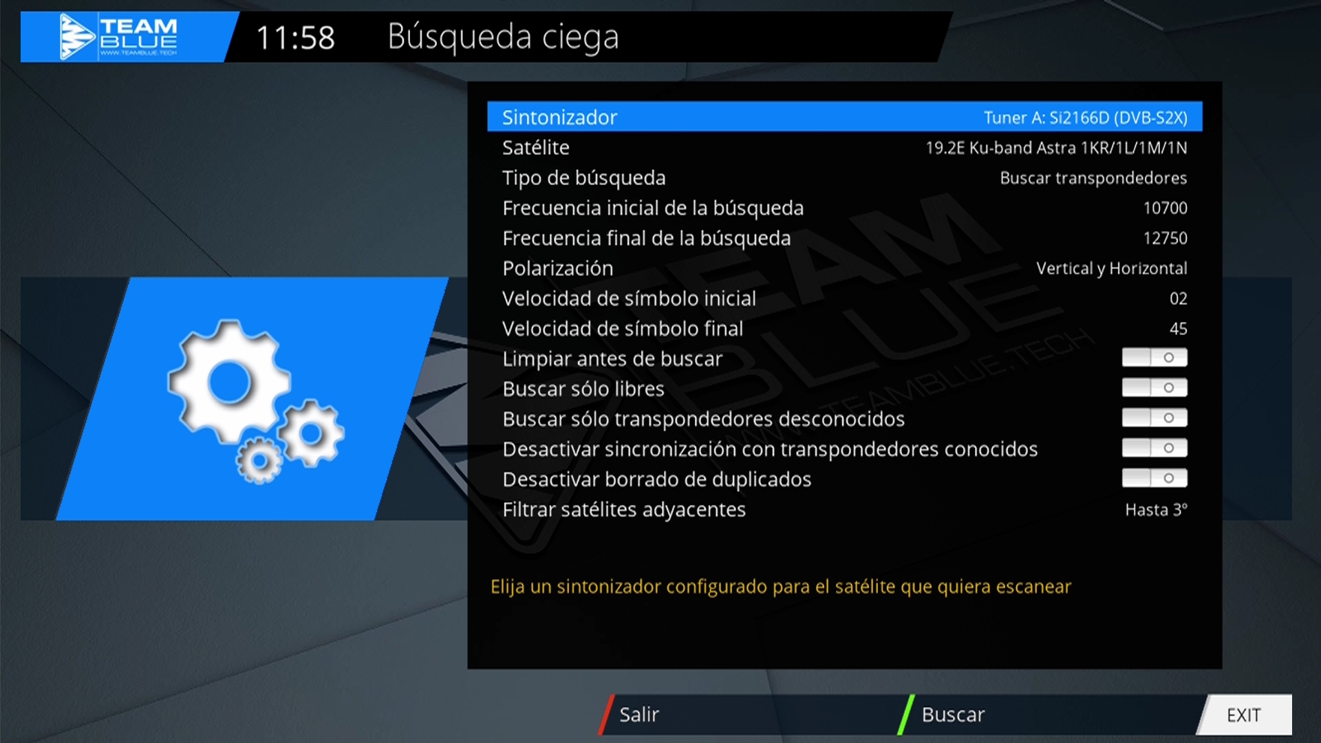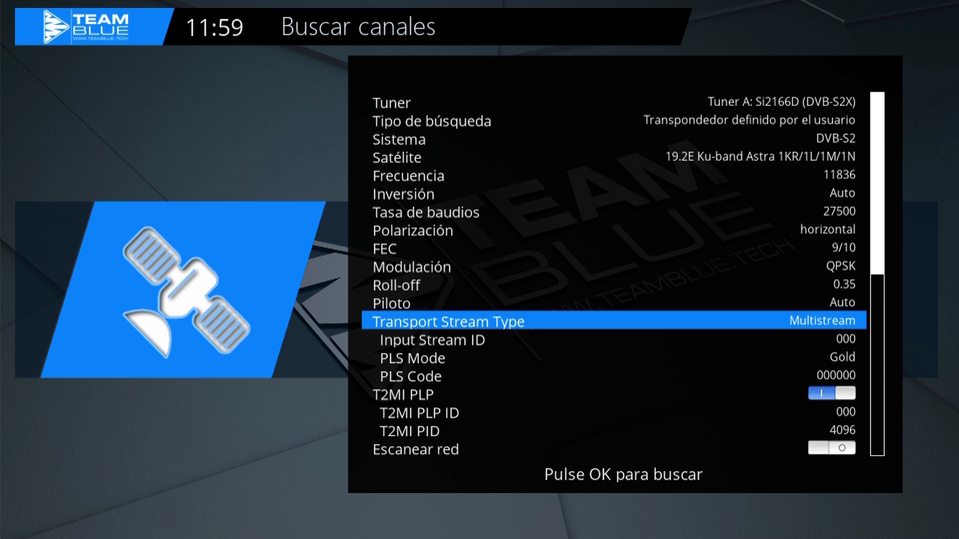 En este caso realizamos una configuracion del receptor combo del tuner dvbs2x y tdt