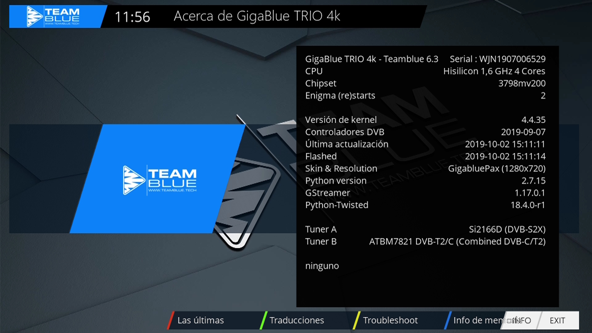 - Version del sistema de fabrica: TeamBlue fecha depende de la fabricacion.