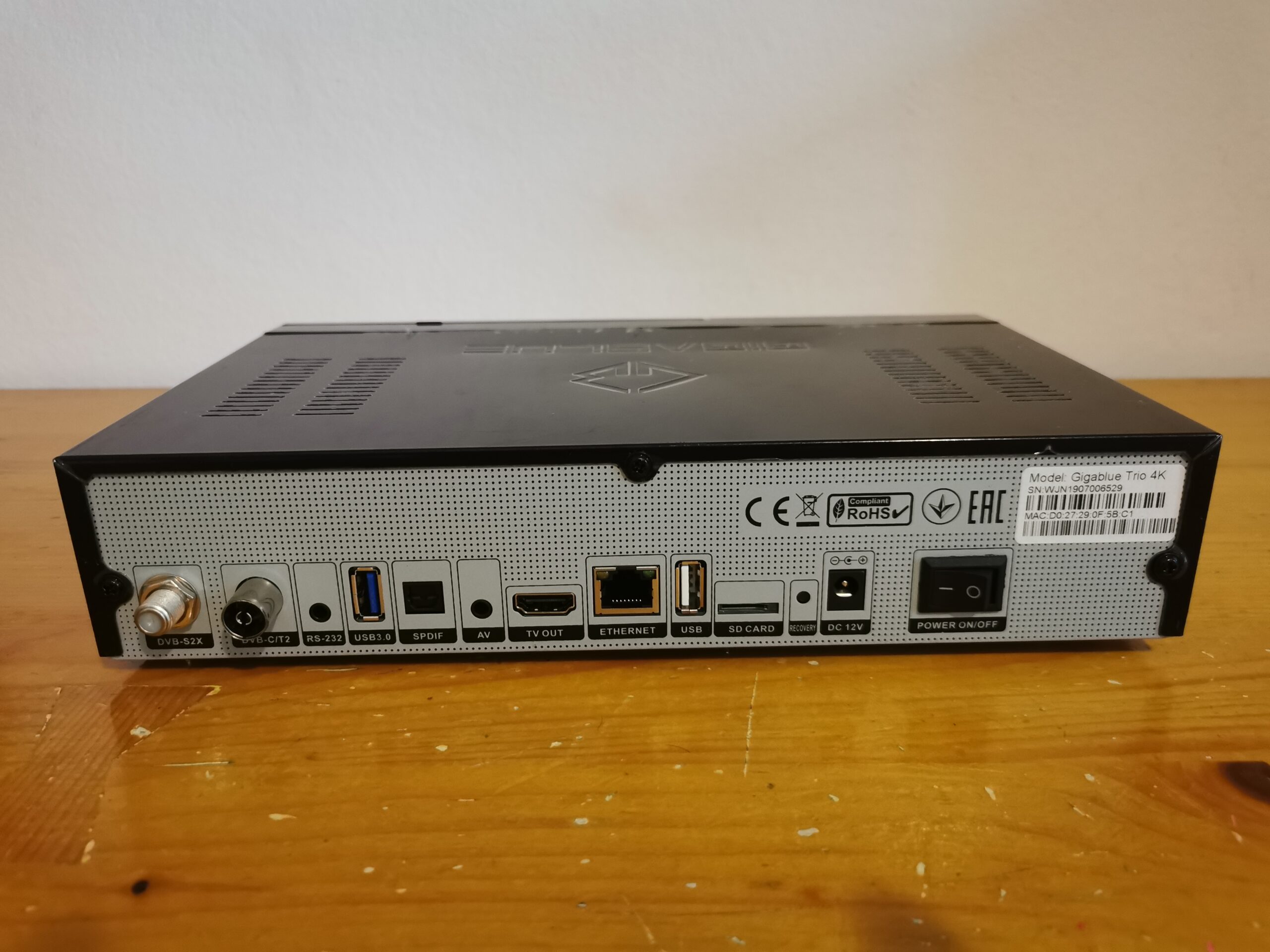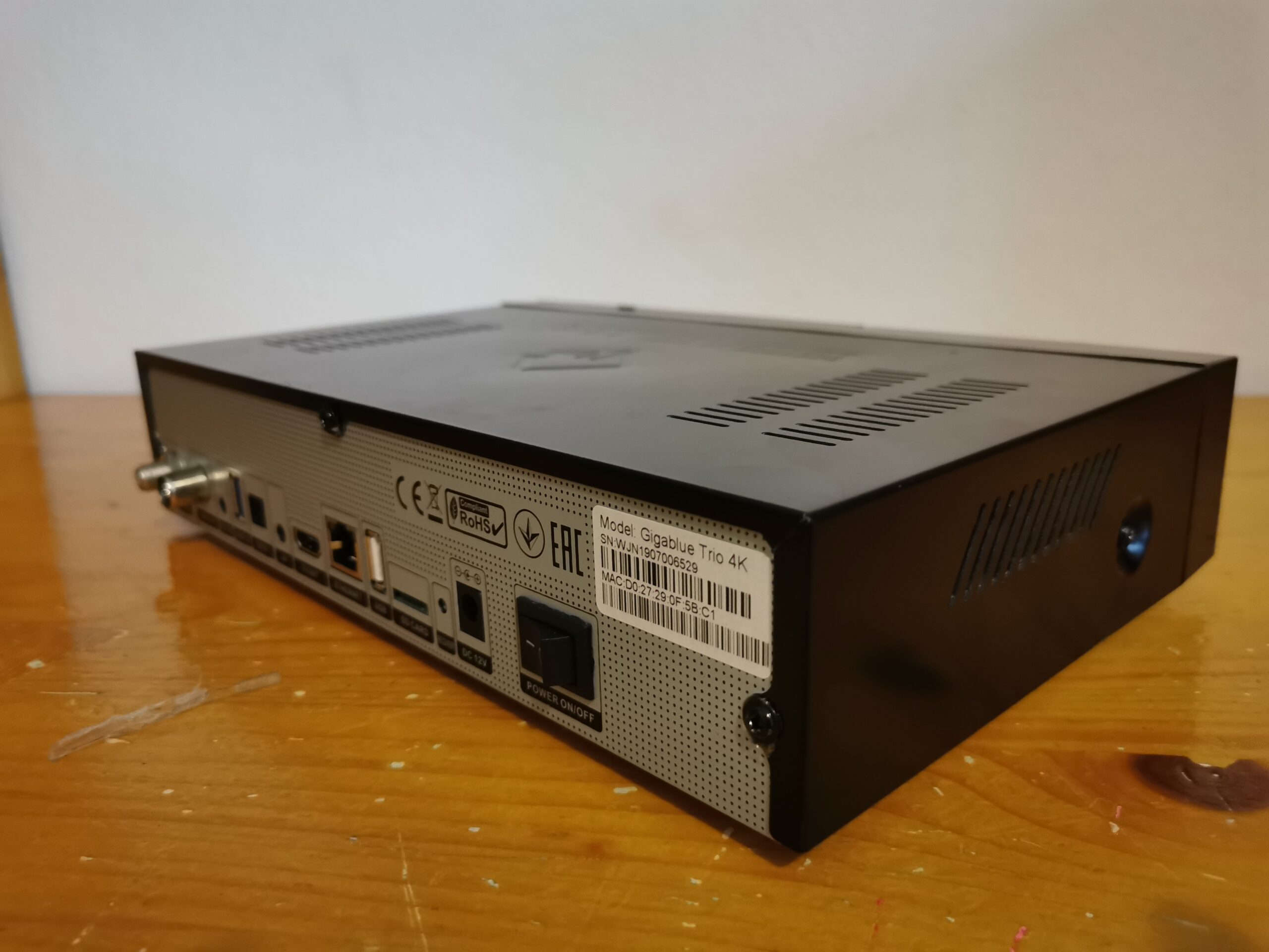 El receptor enigma2 Gigablue Trio lleva integrado una memoria emmc como almacenimiento interno de 8 gb, puertos usb 2.0 y usb 3.0, lector de tarjeta sd.