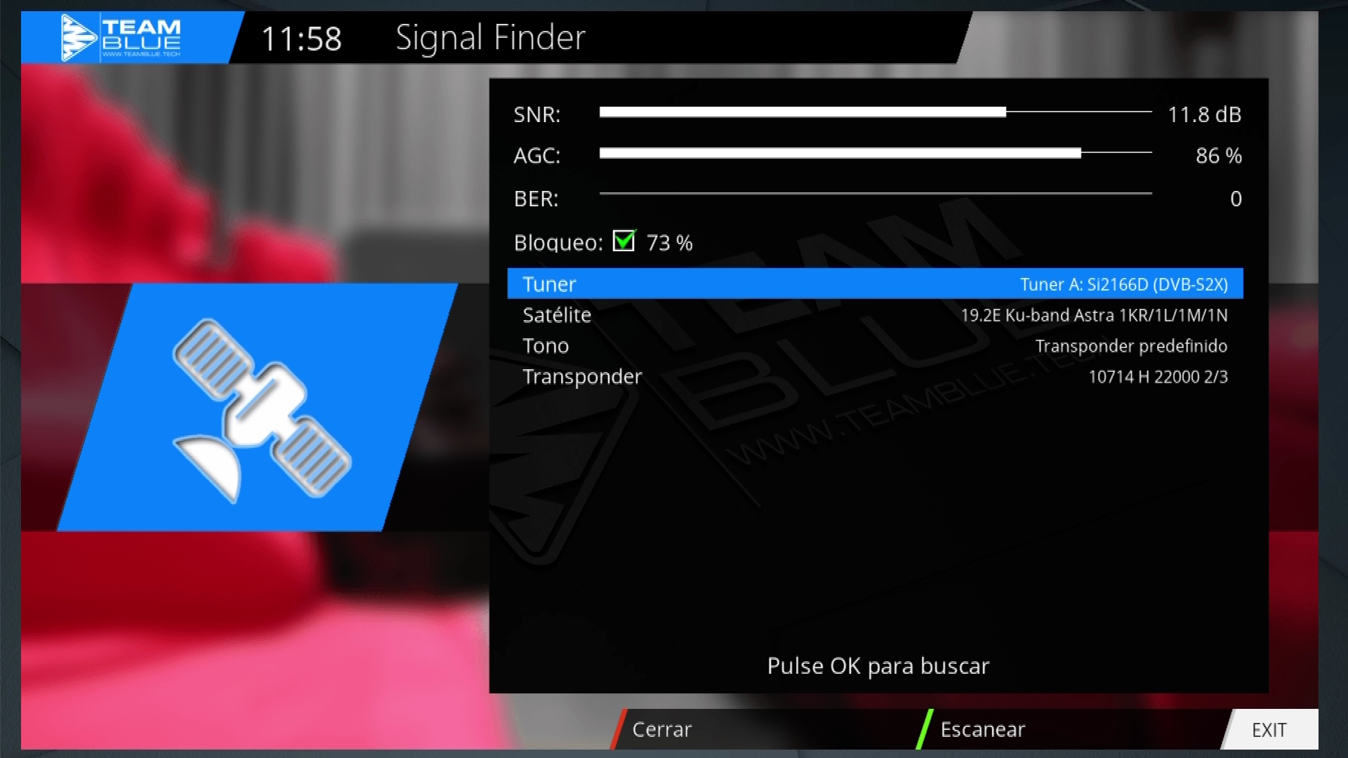 Queremos mencionar en esta ocasion que el nivel de señal que muestra el receptor es el correcto al contrario que en otros receptores como mismo tuner como el Zgemma que estos parametros no los muestra correctamente.