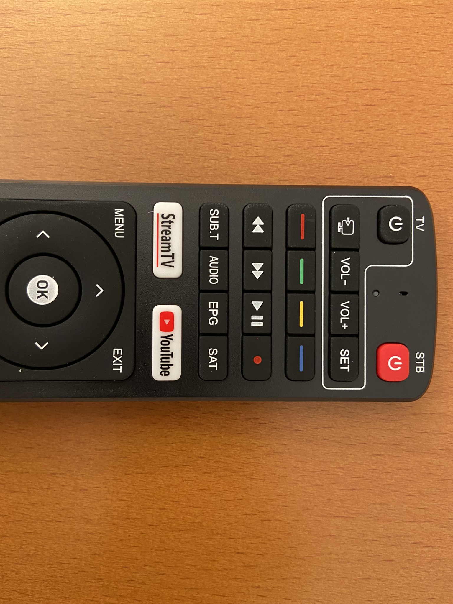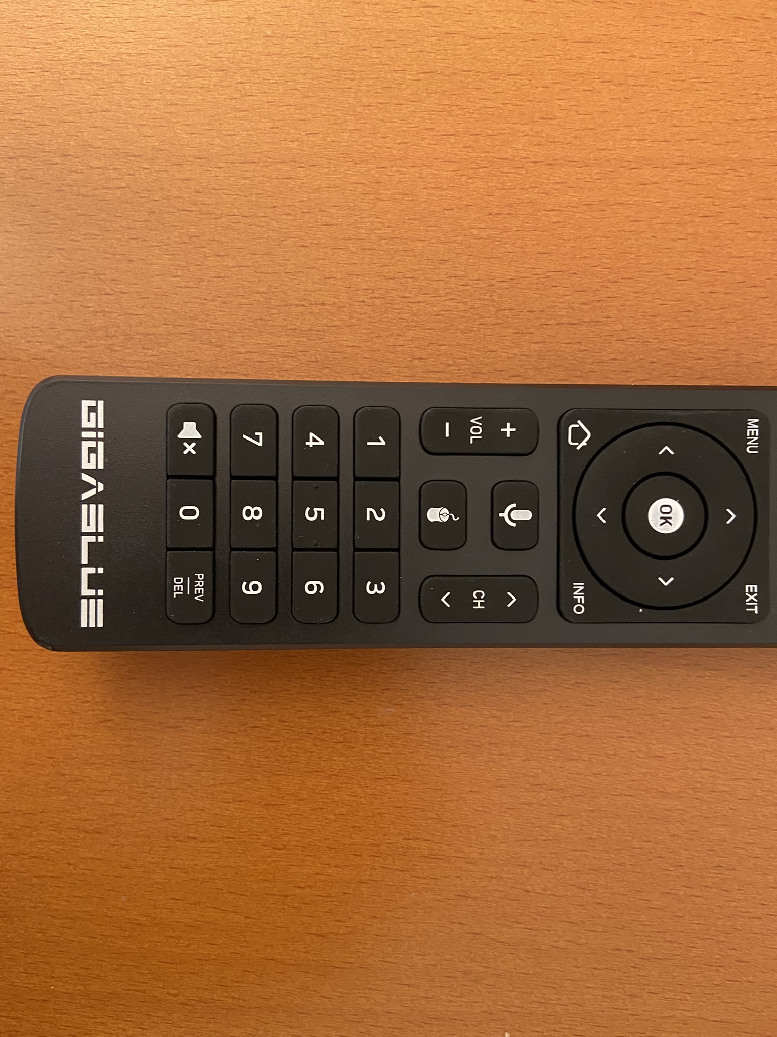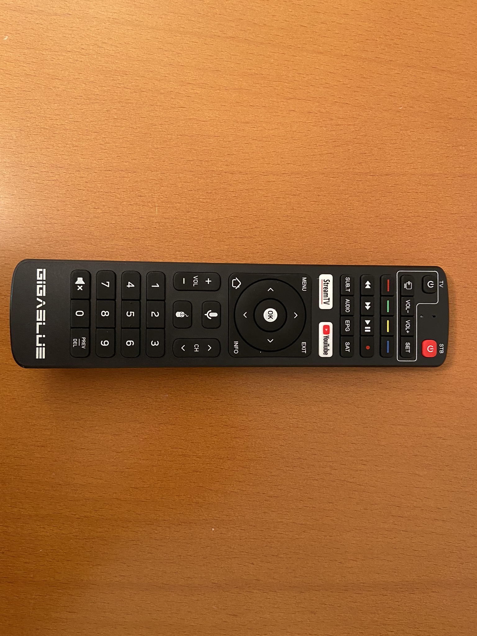 El mando a distancia del Gigablue X1 Plus 4K es tipo BT+IR, bastante agradable al texto y con botones de acceso directo a varias plataformas digitales.
