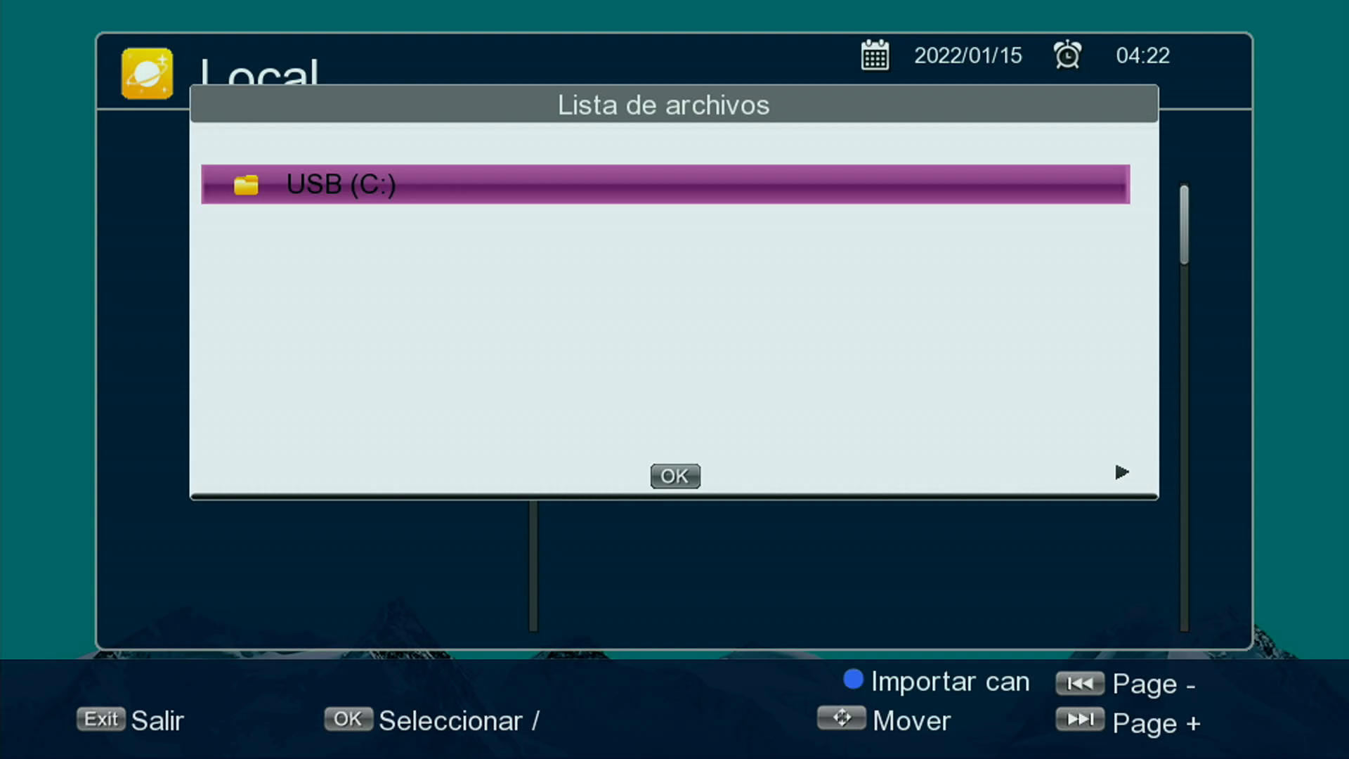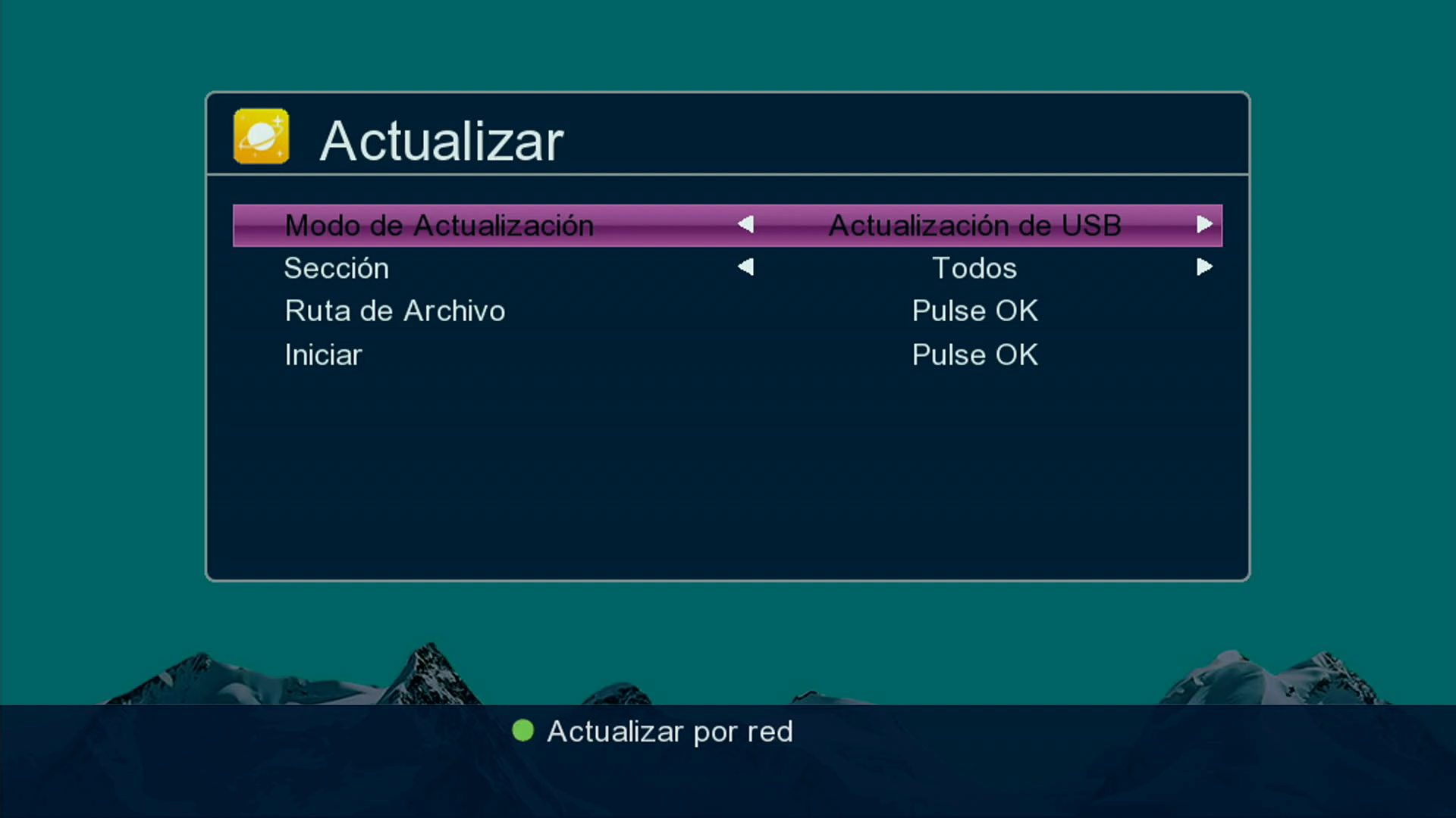 Este Receptor nos perminte actualizaciones via OTA introduciendo url servidor o a traves de USB.