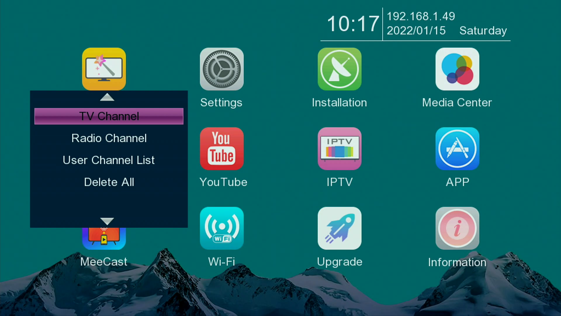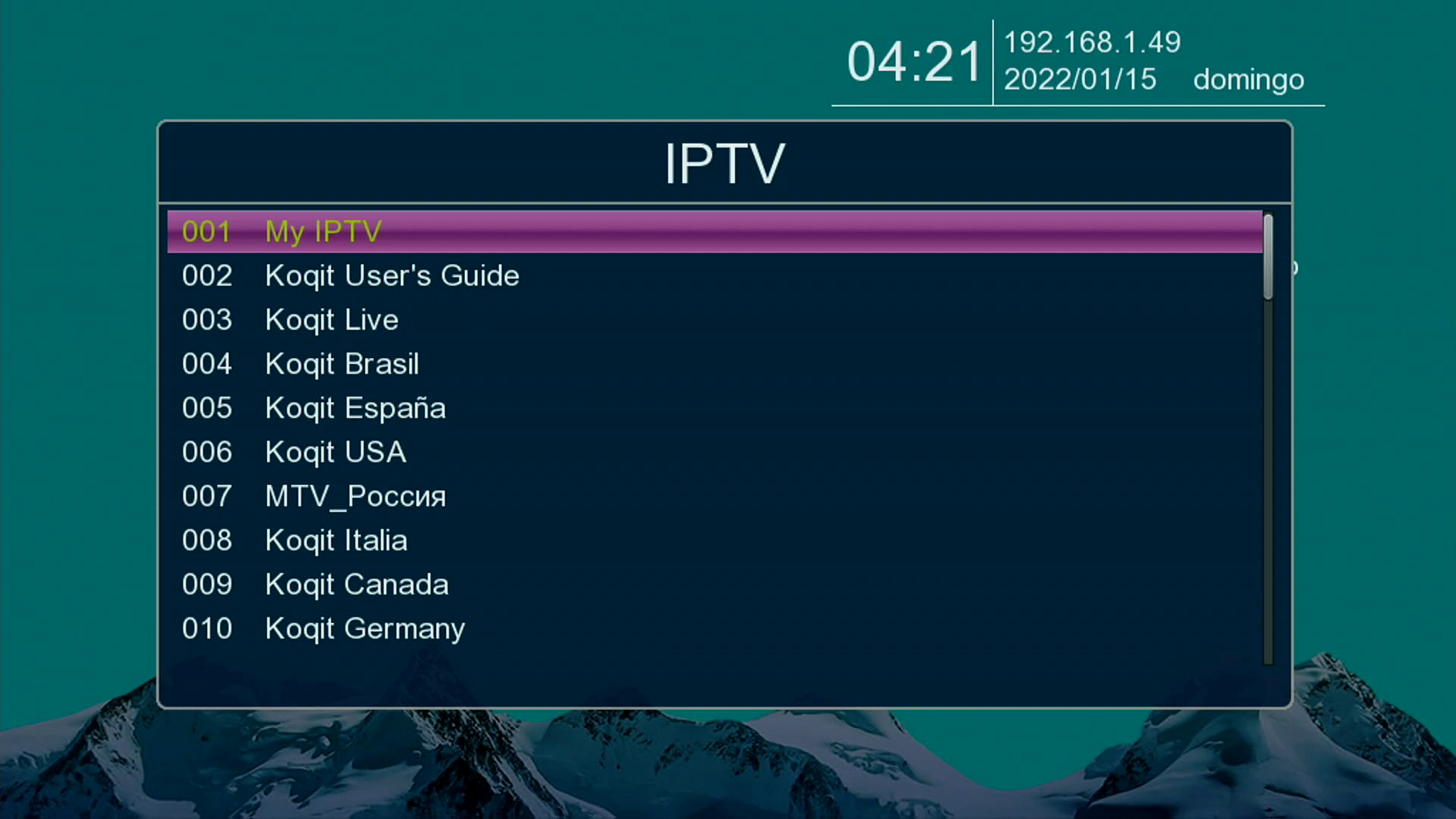 El receptor Koqit VH5 en su sistema operativo podemos diferencia dos partes una se corresponderia con la gestion del Tuner Satelite a traves de la opcion DVB y la otra se corresponderia con aplicaciones IPTV.