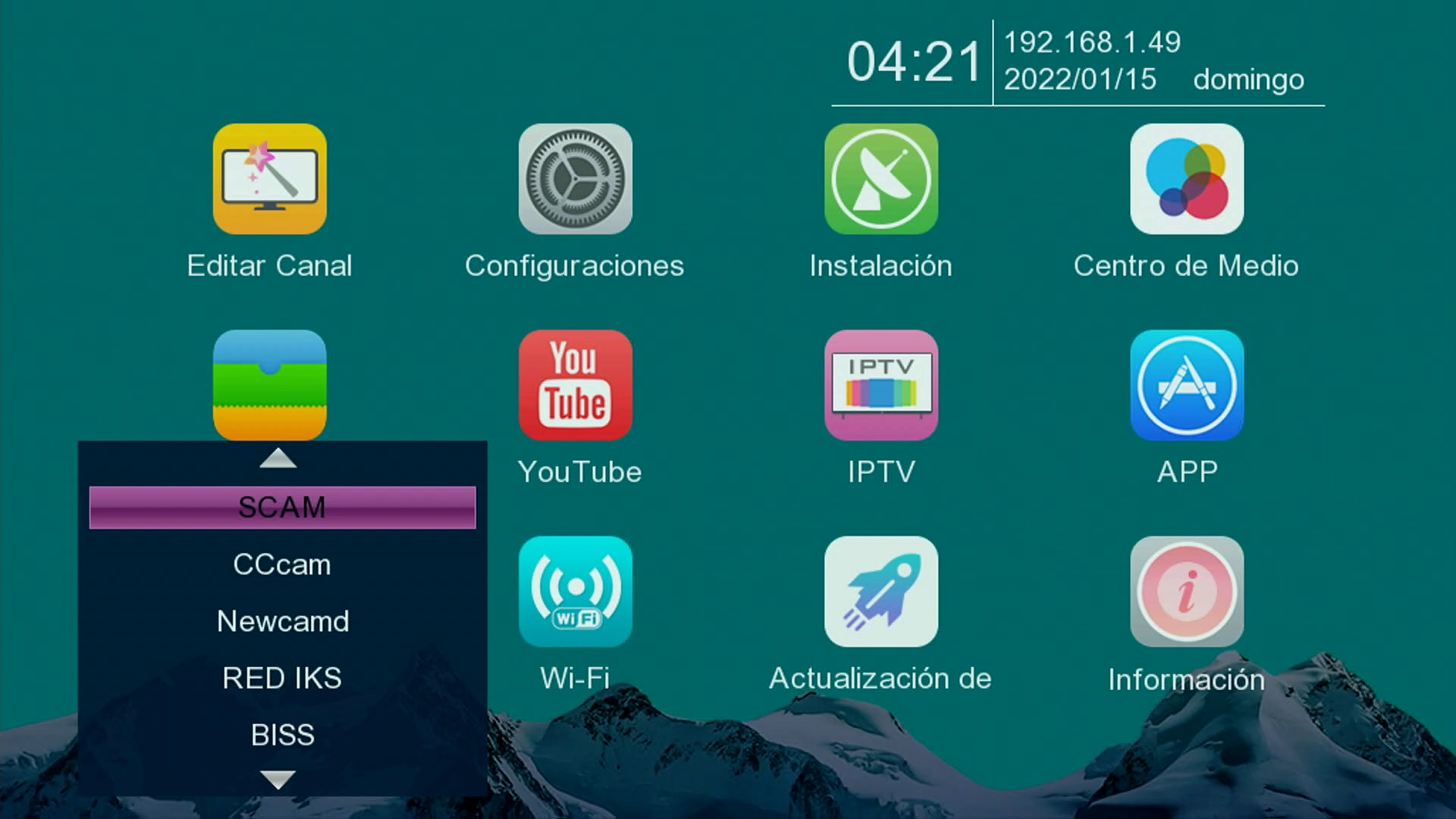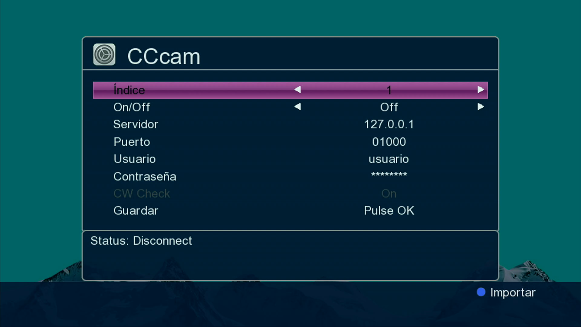 Con firmware proporcionado podemos realizar la gestion emuladoras a traves de la opcion menu CS, siendo compatible el receptor con los protocolos mas comunes como CCcam o Newcam, donde podemos gestionar la introduccion de datos tanto con teclado virtual o mediante archivo de configuracion