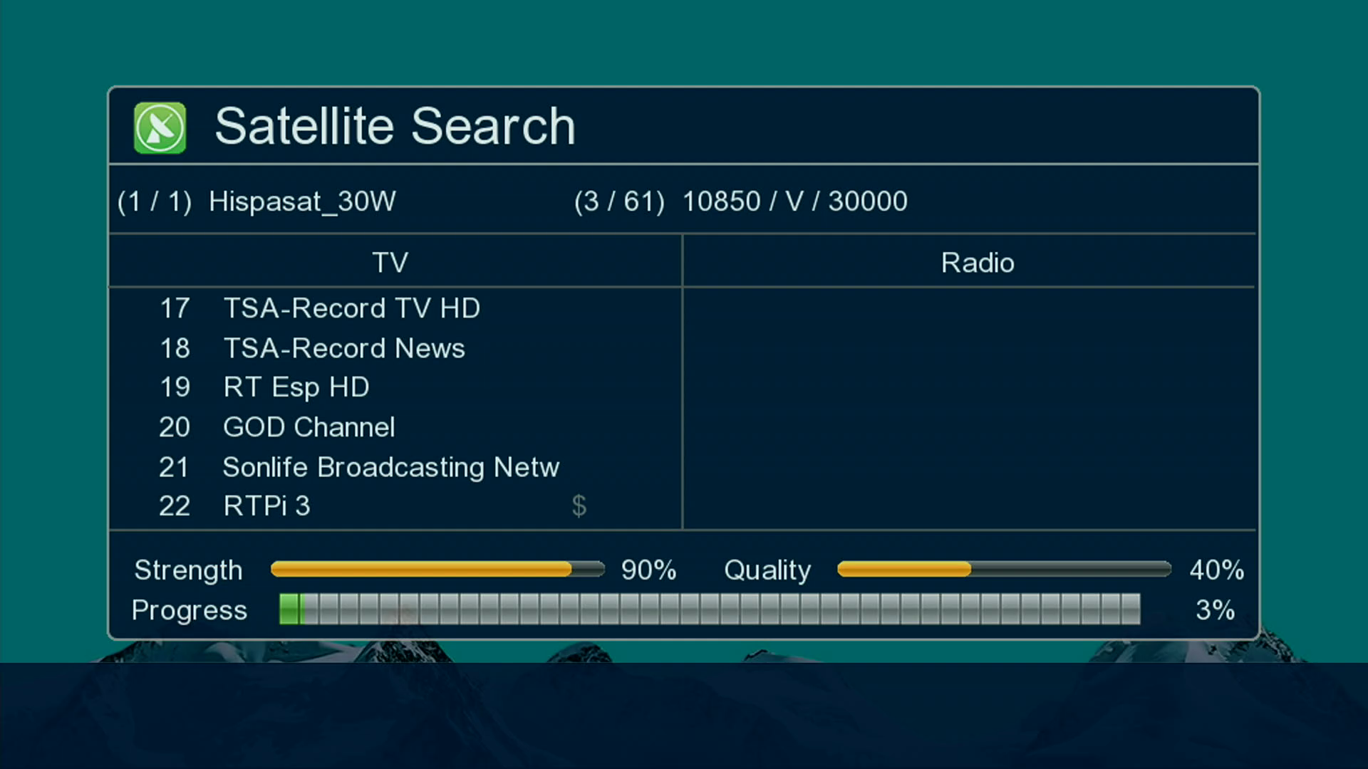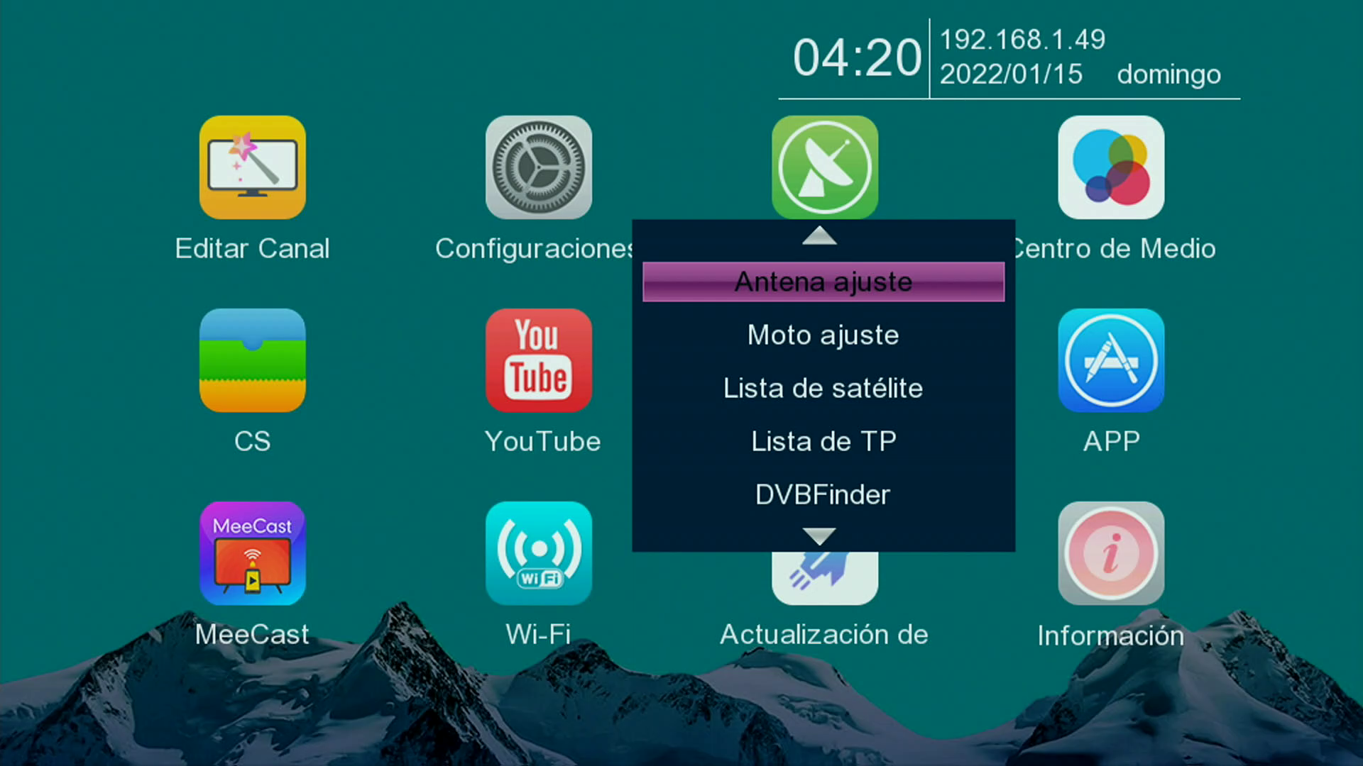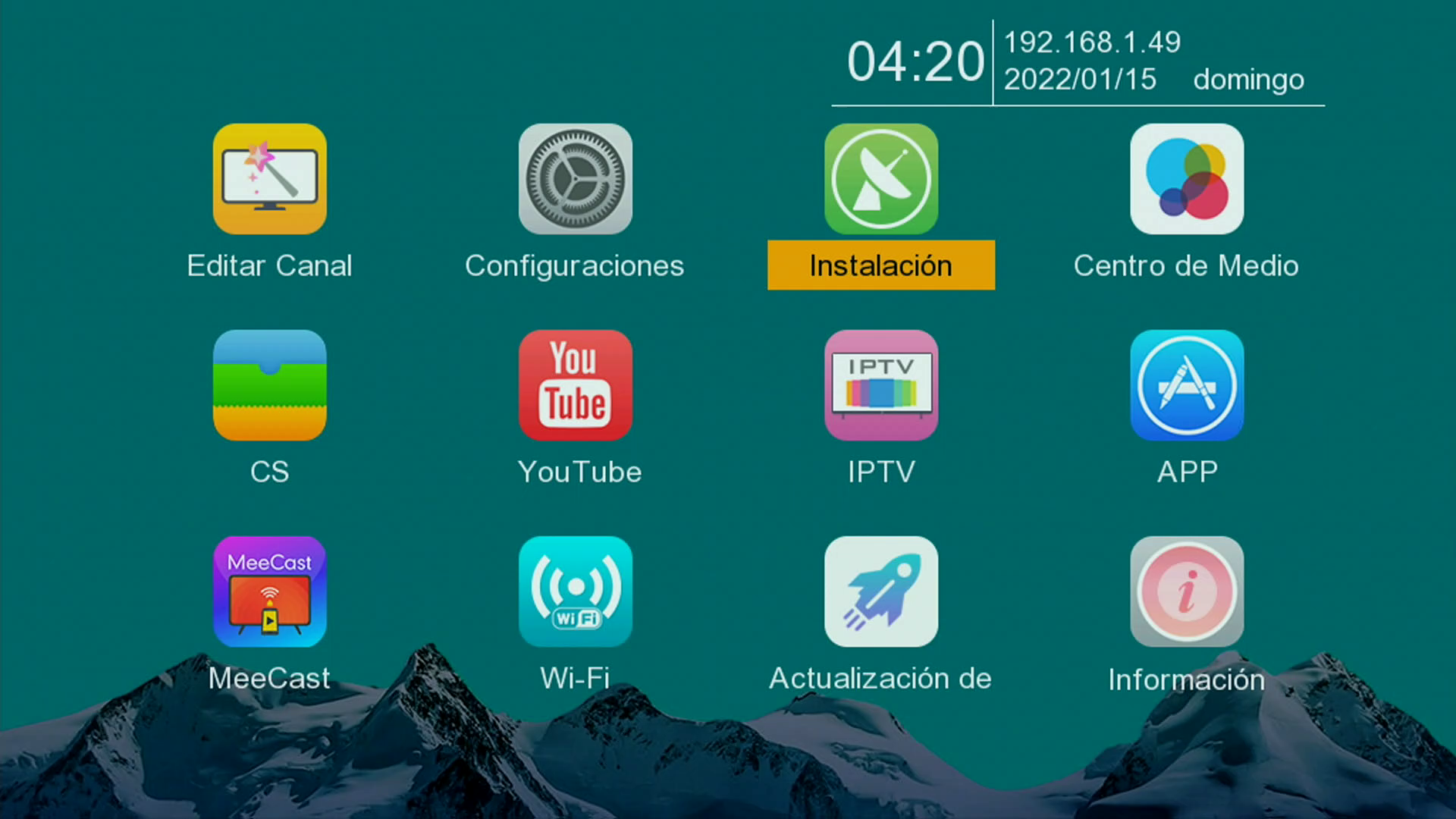 Es el encargado de la gestion del tuner Satelite, para el cual usariamos el menu Instalacion donde podemos configurar nuestra isntalacion satelite y realizar busqueda de canales: