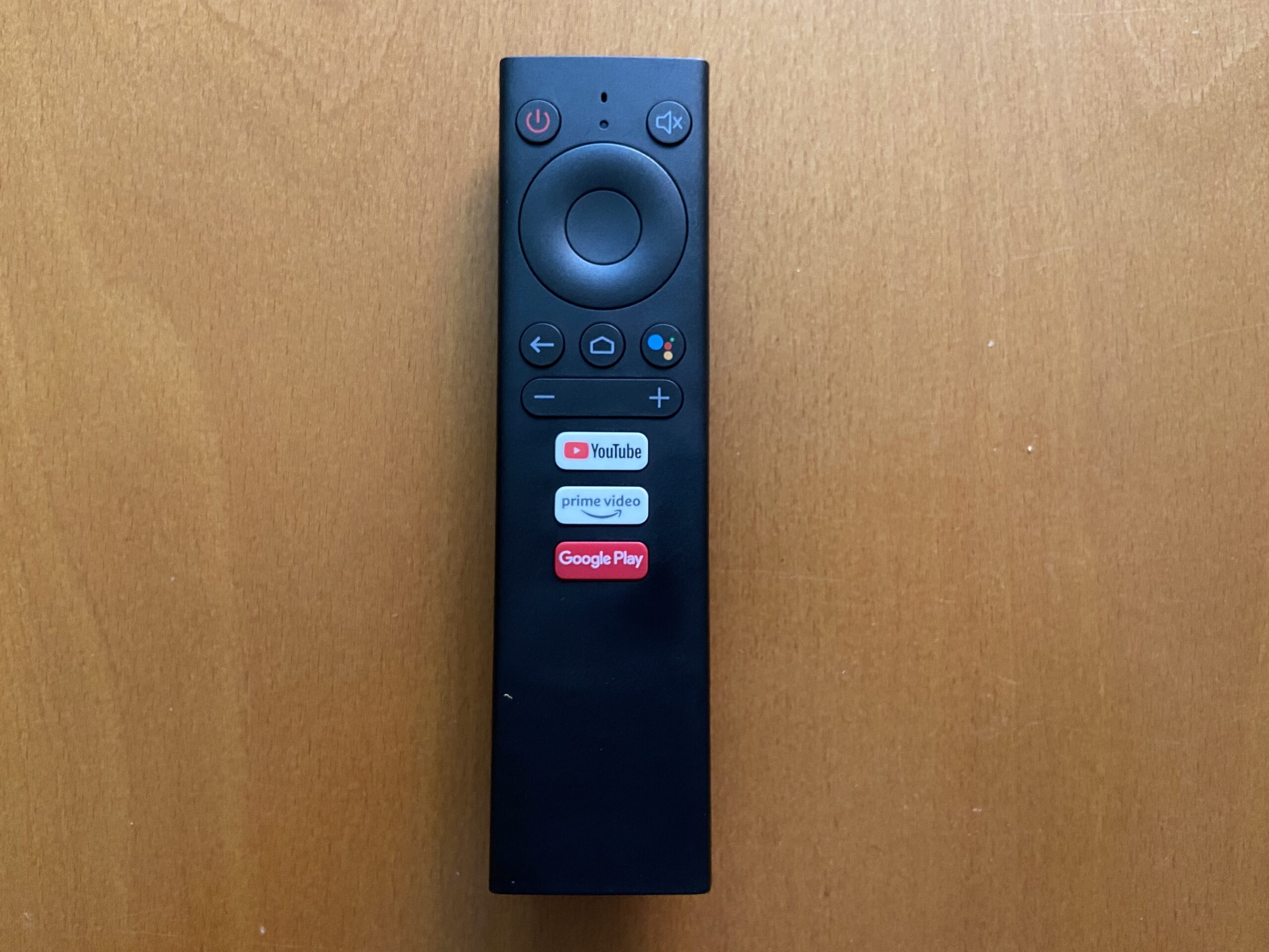 El mando a distancia del AX Mecool KM9 PRO Deluxe es tipo BT+IR con micro / Compatible con teclado y ratón / App de control para Android TV, bastante agradable al texto y con botones de acceso directo a varias plataformas digitales.
