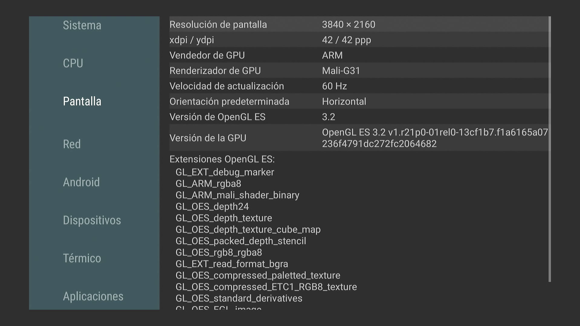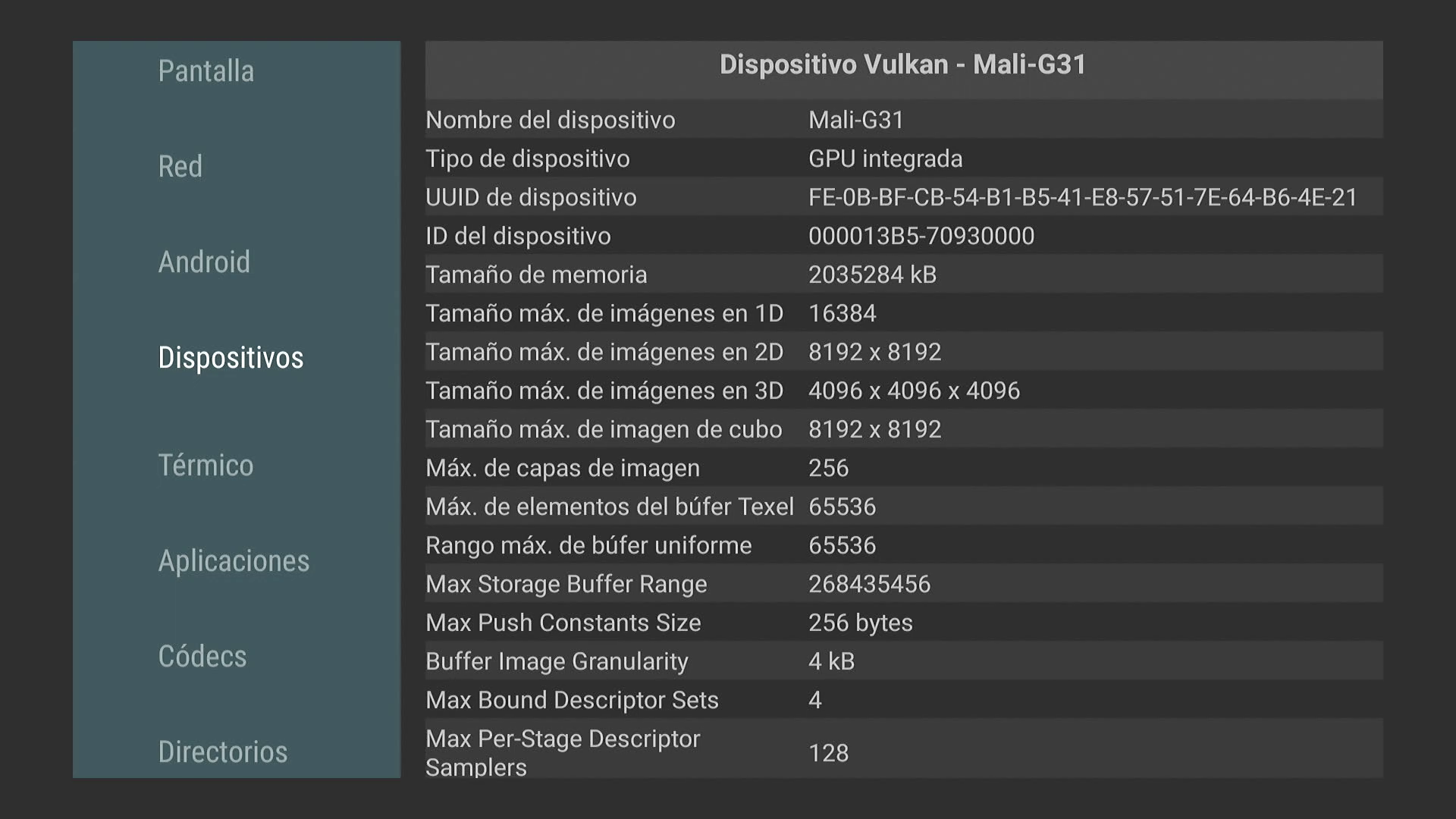 Procesador de gráficos de 4 núcleos : ARM Mali-G31 MP2