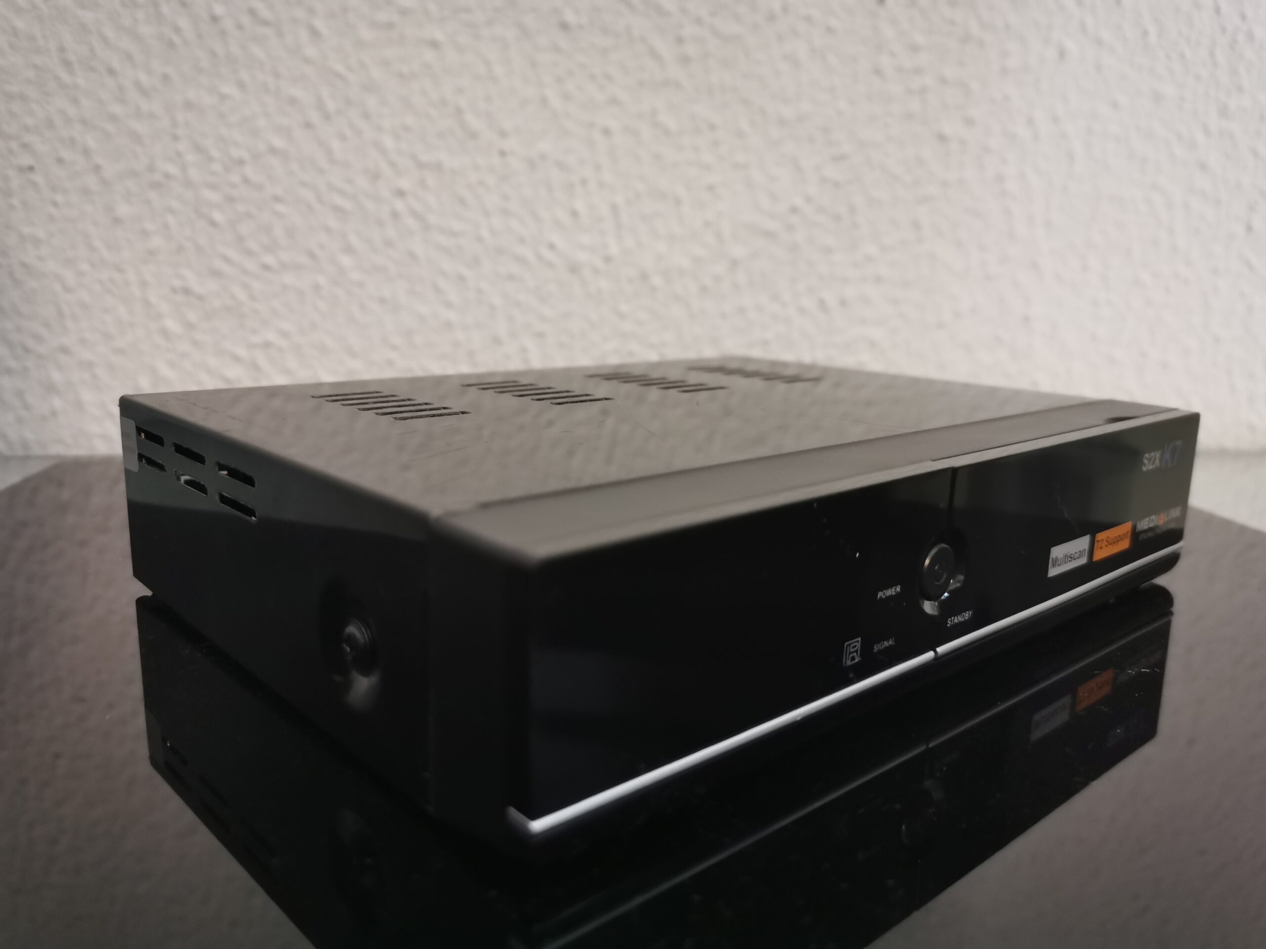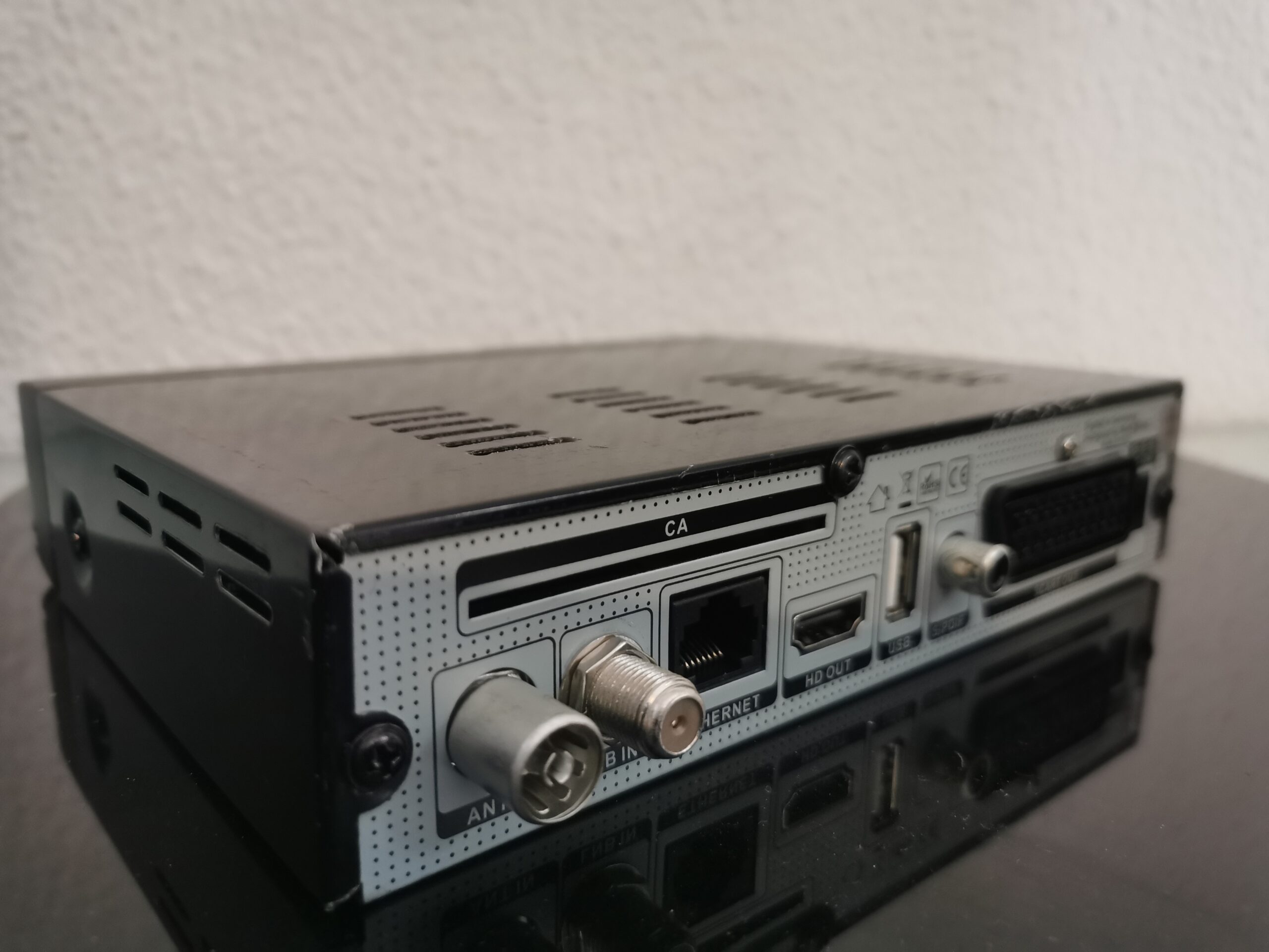 En la parte Posterior nos encontramos con el grueso de las conexiones, de izquierda a derecha el tuner Satelite y tdt, entrada ethernet, salida HDMI, usb 2.0, salida s/pdif, salida scard y entrada fuente alimentacion.