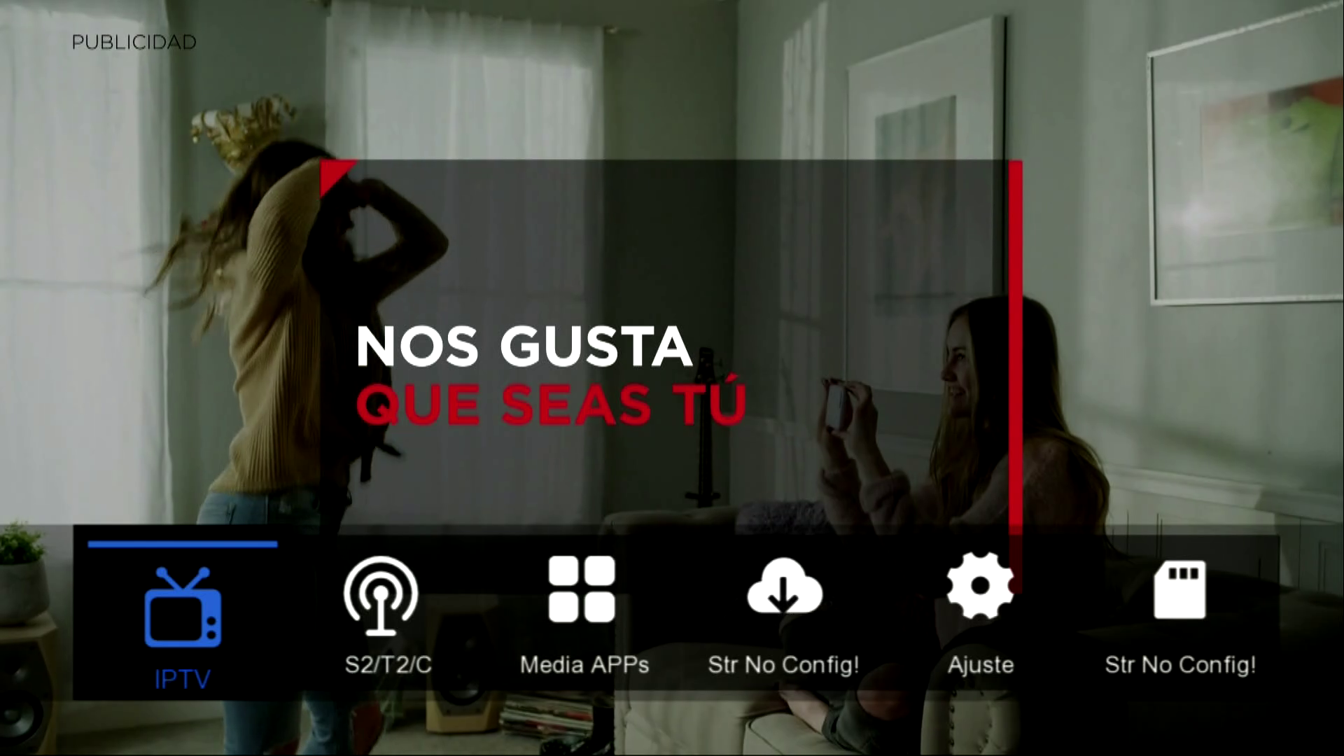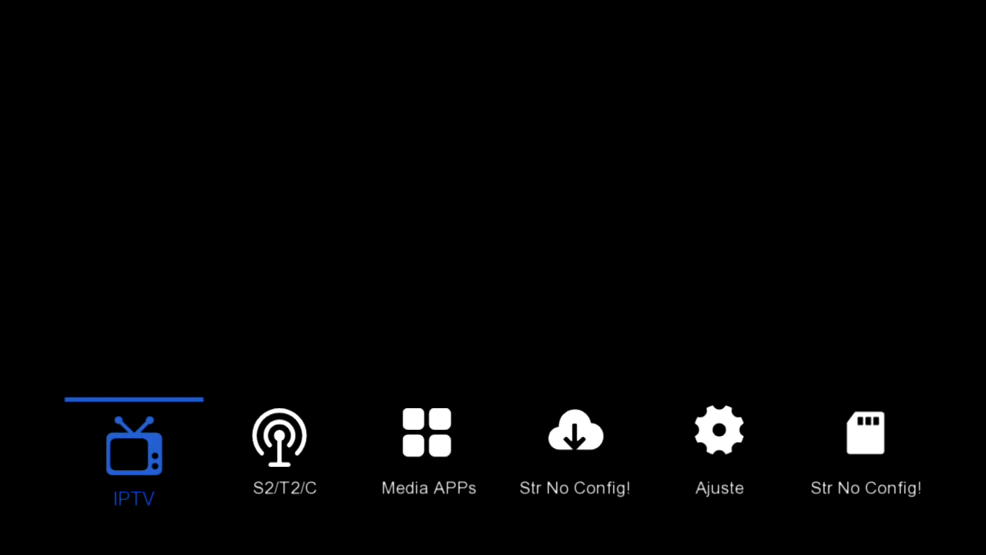 - Pantalla inicial: tipo launcher medialink que nos permite acceder a las distintas opciones de sat/tdt, iptv y ajustes.