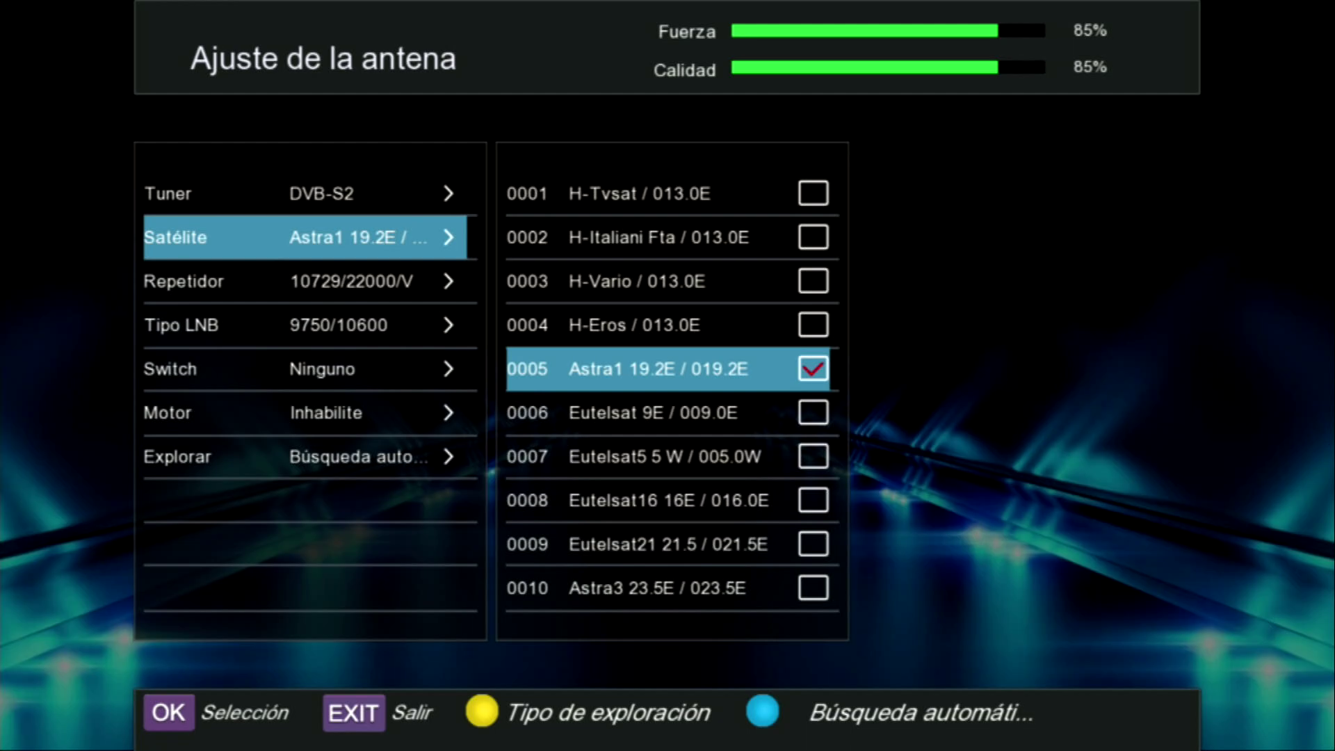 Es el encargado de la gestion del tuner Satelite y tdt el cual es compatible con Multistream (por ejmplo a traves de los canales Hispasat). A traves de esta opcion podemos gestionar los canales Satelite