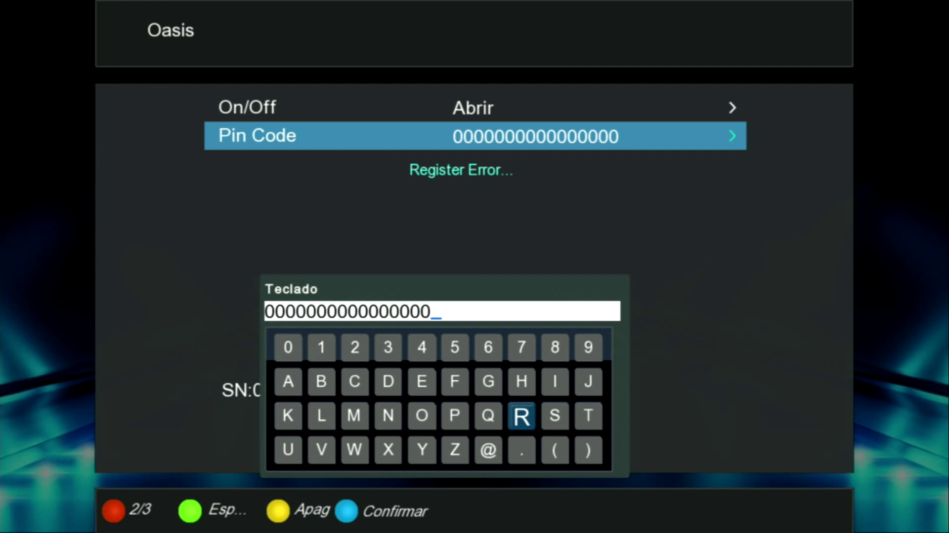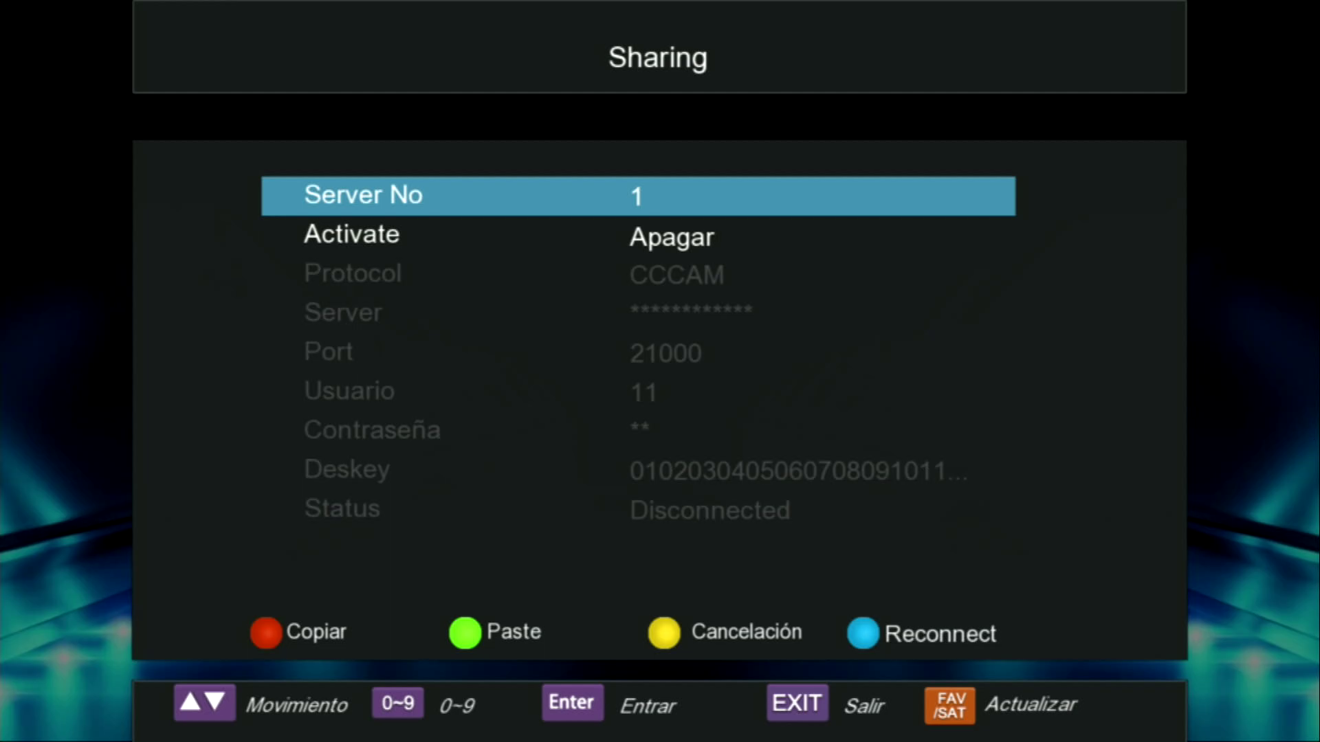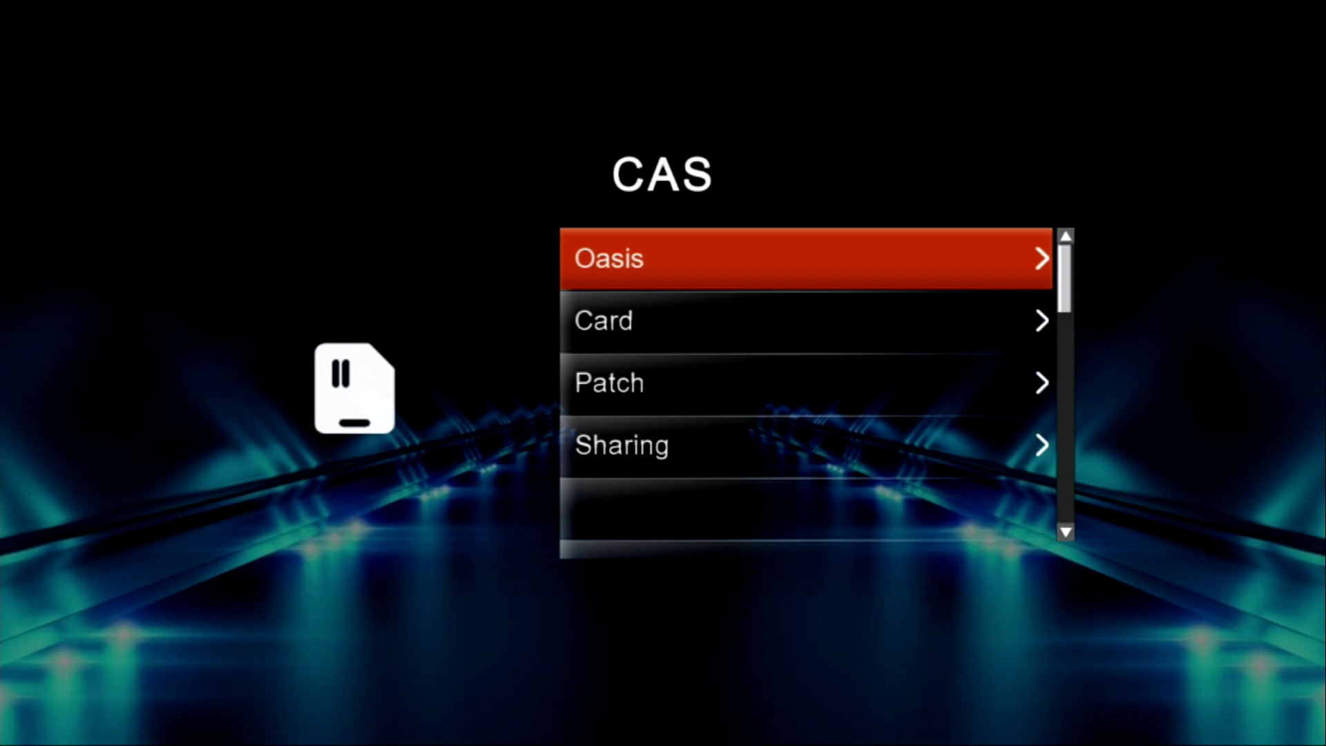 Con firmware proporcionado activando en el menu CAS con la introduccion de 9999 accedemos a los opciones de card tipo Oasis o cccam