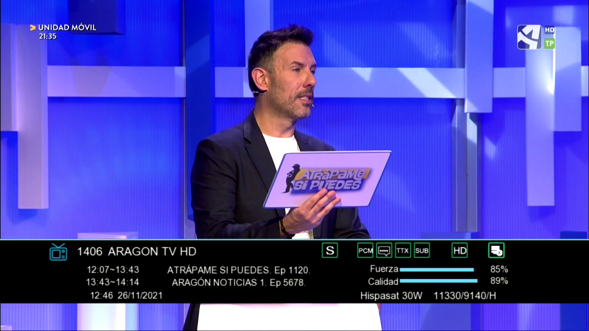 En cuanto al tuner dvbs2x este es compatible con canales multistream, por ejemplo los que emiten por hispasat, una captura de canal Aragon TV multistream Hispasat