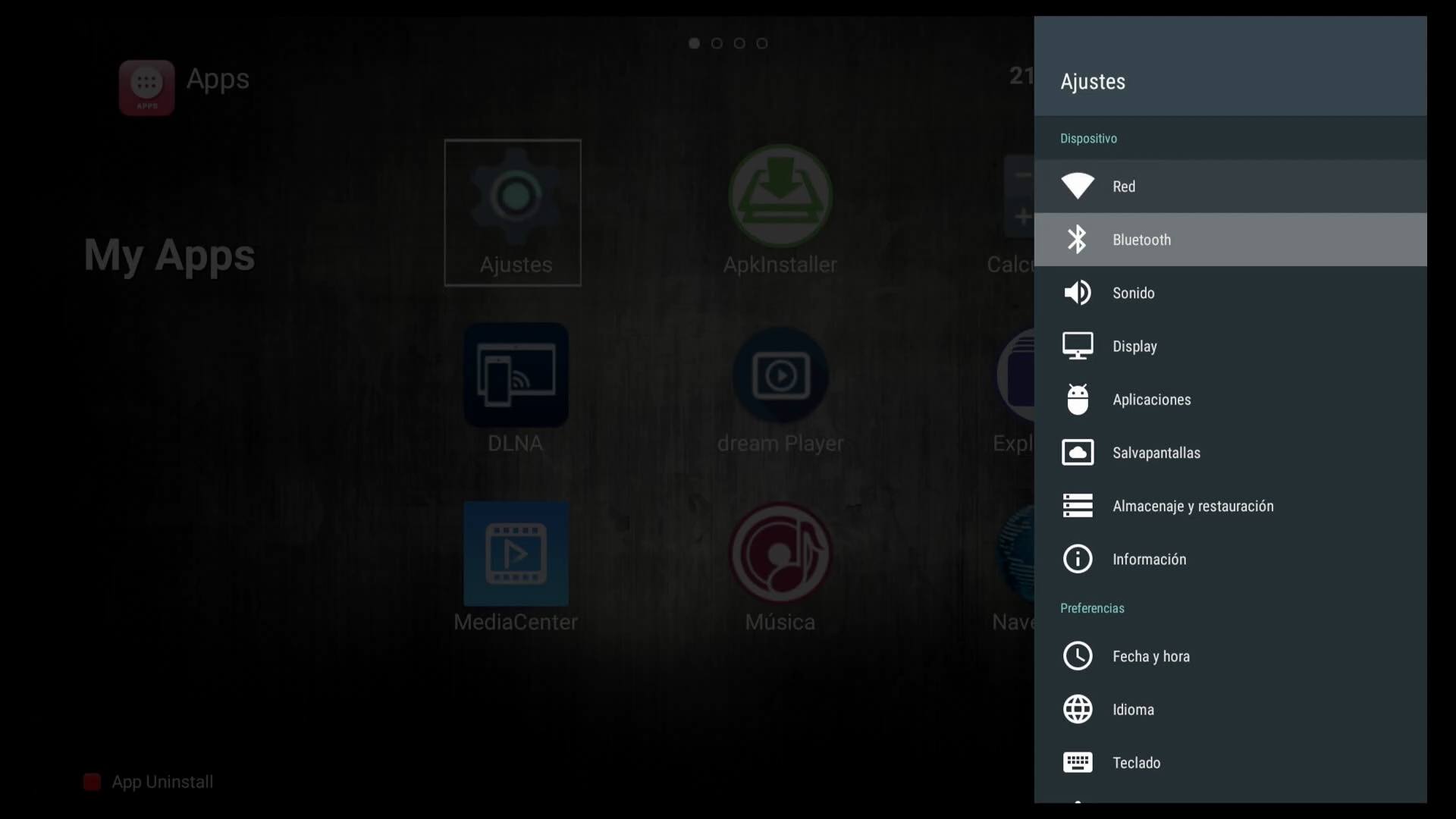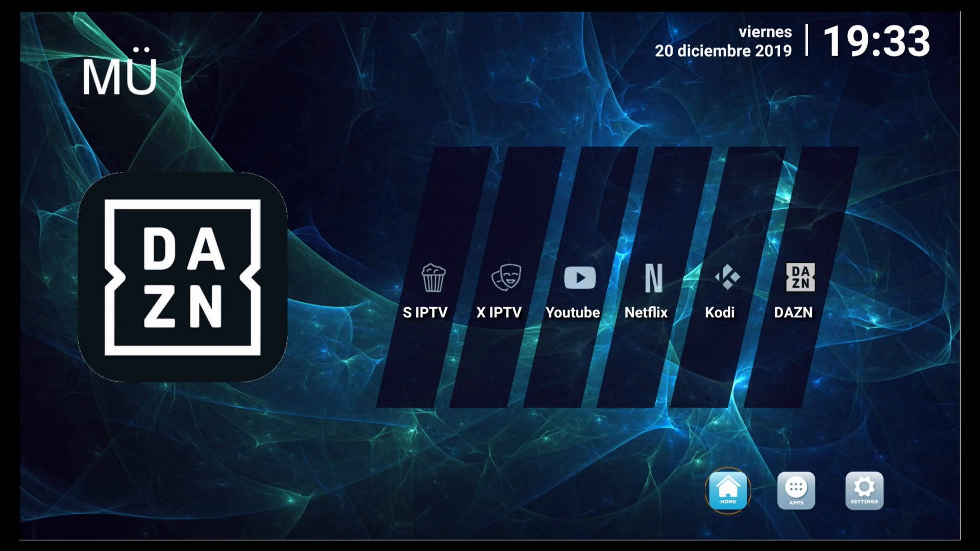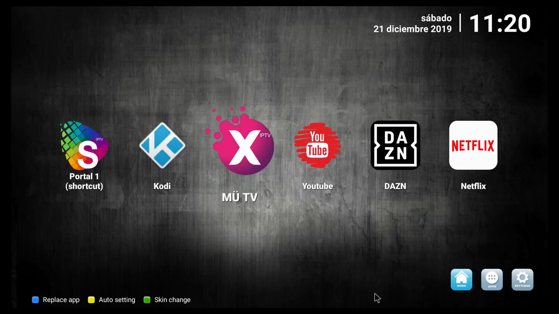 - Multitarea y acceso: En el menu principal en parte inferor podemos seleccionar las app a mostrar en la pantalla principal asi como el sistema con el cual arrancar (kodi en el caso de ser instalado o alguna de las app iptv instaladas).