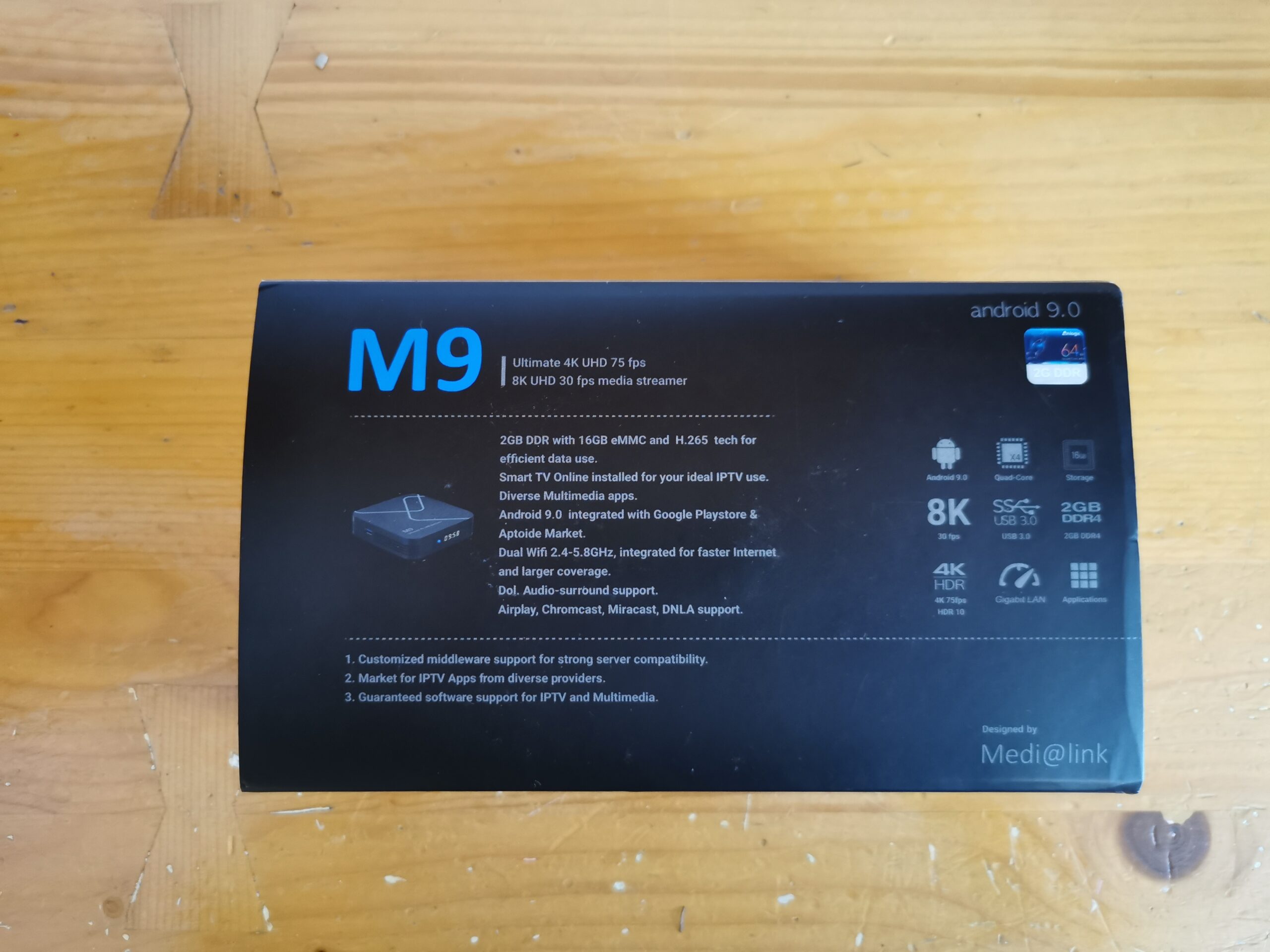 Mu M9 es el nuevo receptor Android TV-Box del fabricante Medi@link una evolución de MU M8, del cual presentamos hoy su analisis, el cual cuenta con SOC Amlogic S905X3 con cpu de 4 núcleos Arm cortex-A55 de 1900 mhz, caja de plástico con wifi incorporado compatible con las bandas 2.4 Ghz y 5 Ghz, 2 GB de memoria ram, así como 16 gb de flash interna, tarjeta de red Gigabit y sistema operativo android 9 Pie. Vamos a ver en nuestra revision como se comporta el dispositivo.