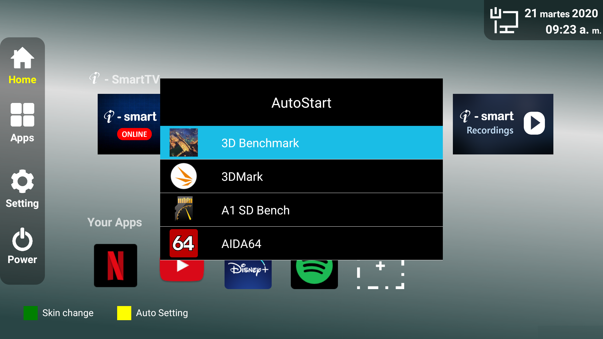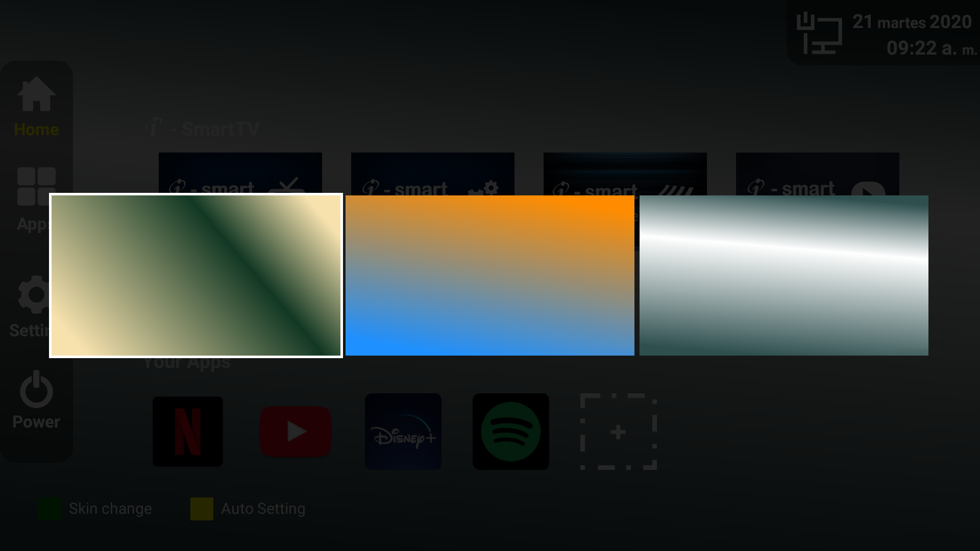 - Multitarea y acceso: En el menu principal en parte inferior podemos seleccionar a través de los botones de colores del mando a distancia desde cambiar el fondo de pantalla, así como las aplicaciones en inicio de pantalla que deseamos agregar.
