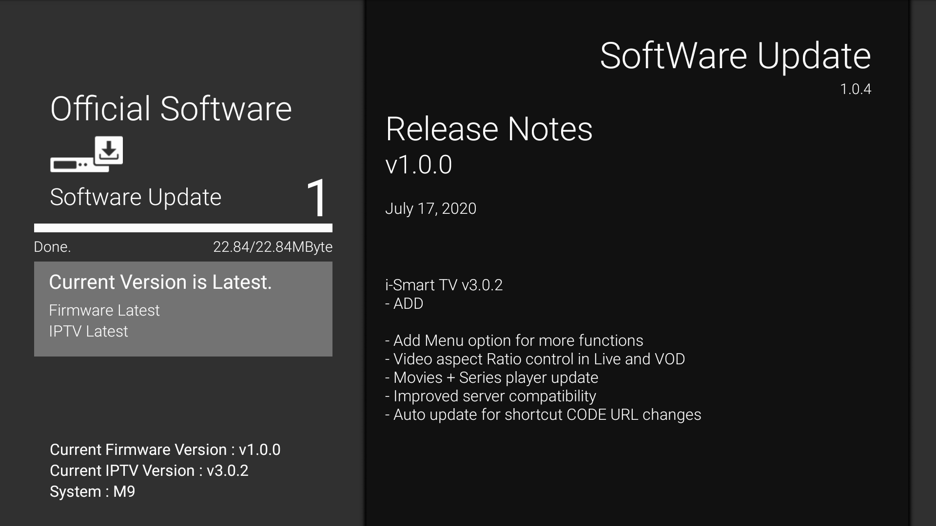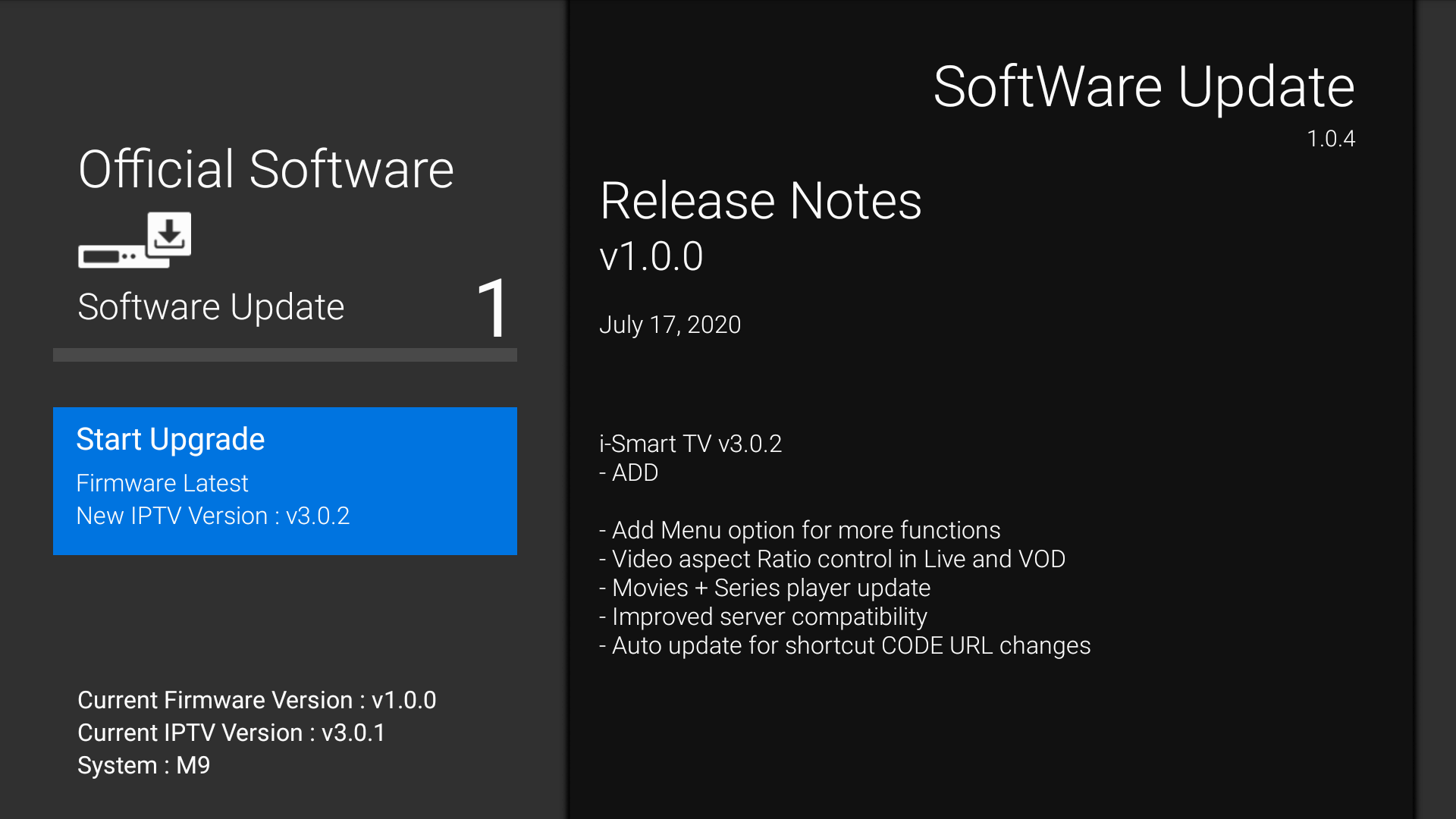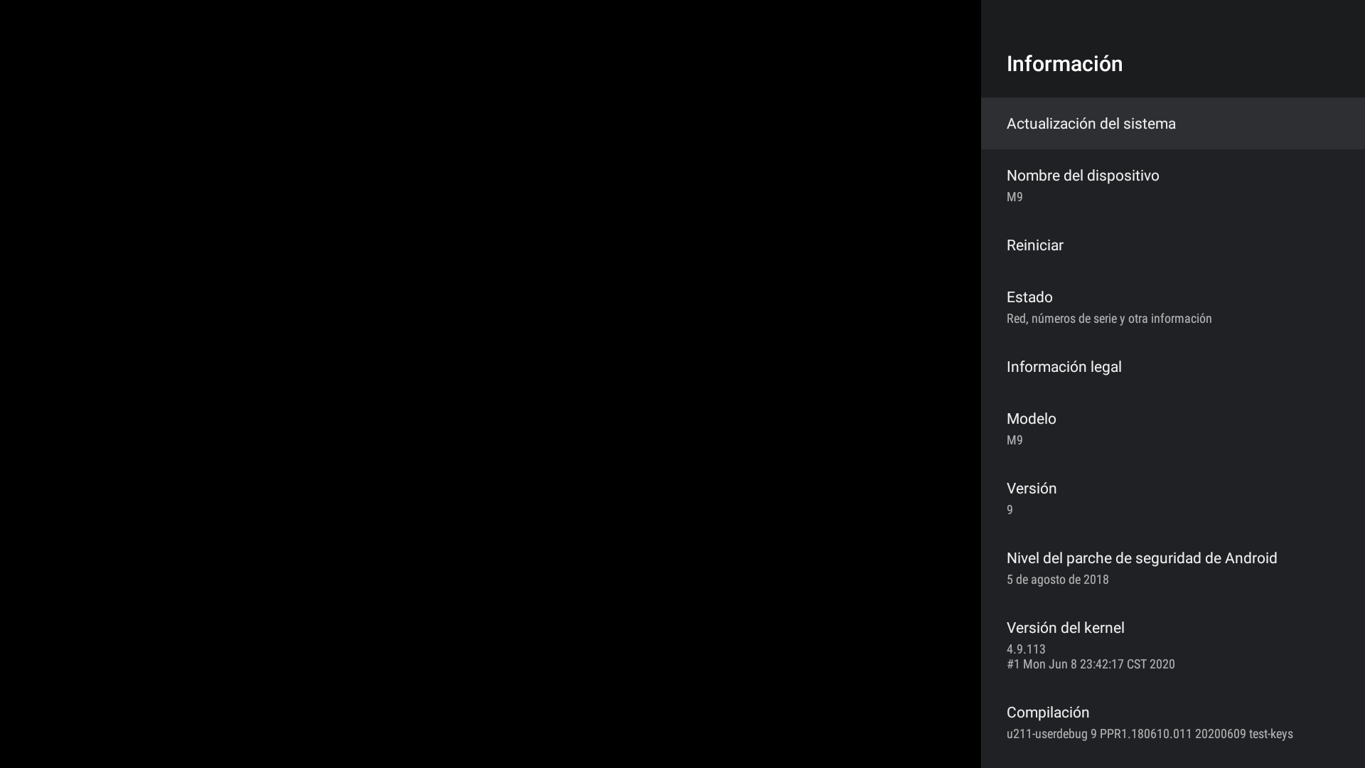 Al encender nuestra TV Box Mu M9 esta arranca con sistema operativo Android 9 Pie, el launcher que utiliza es i-Smart IPtv proporcionado por el fabricante medi@link, enfocado las app por defecto al sistema Iptv, en las siguientes capturas podemos observar el proceso de actualización upgrade del sistema tipo OTA a traves del menu: