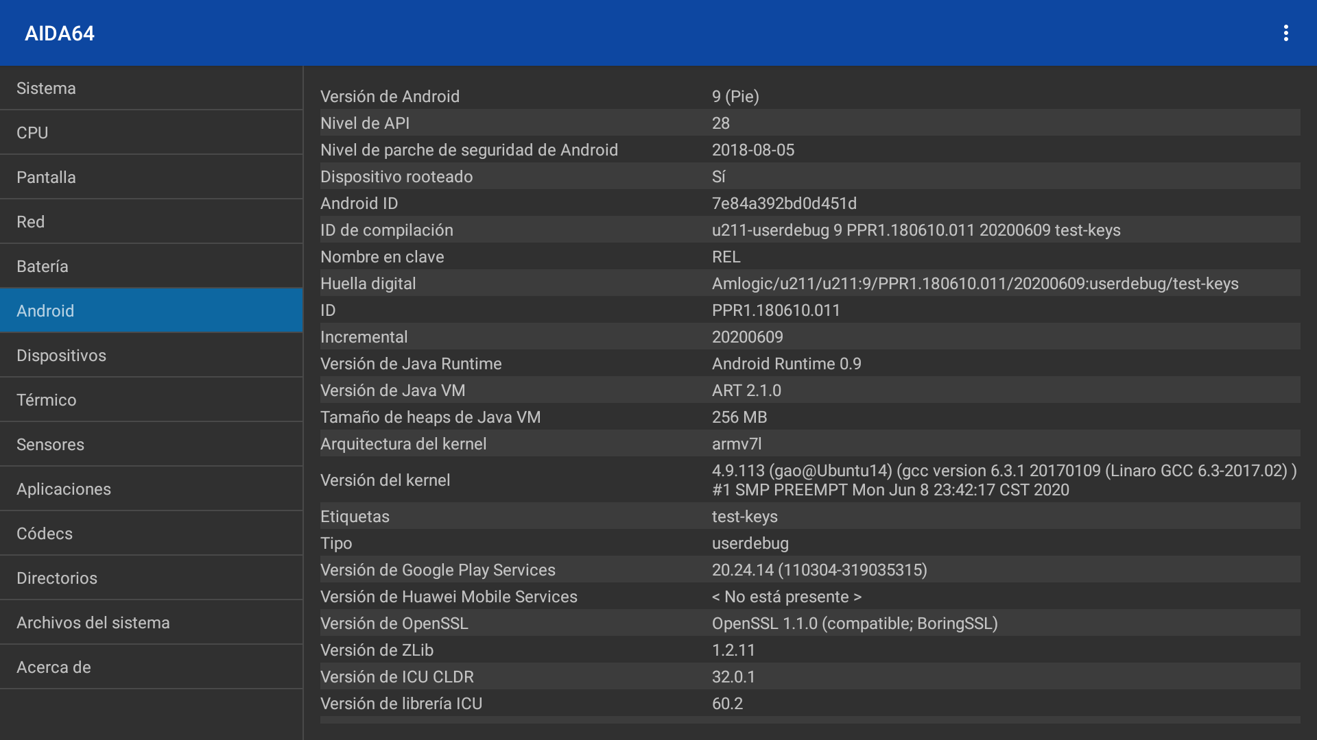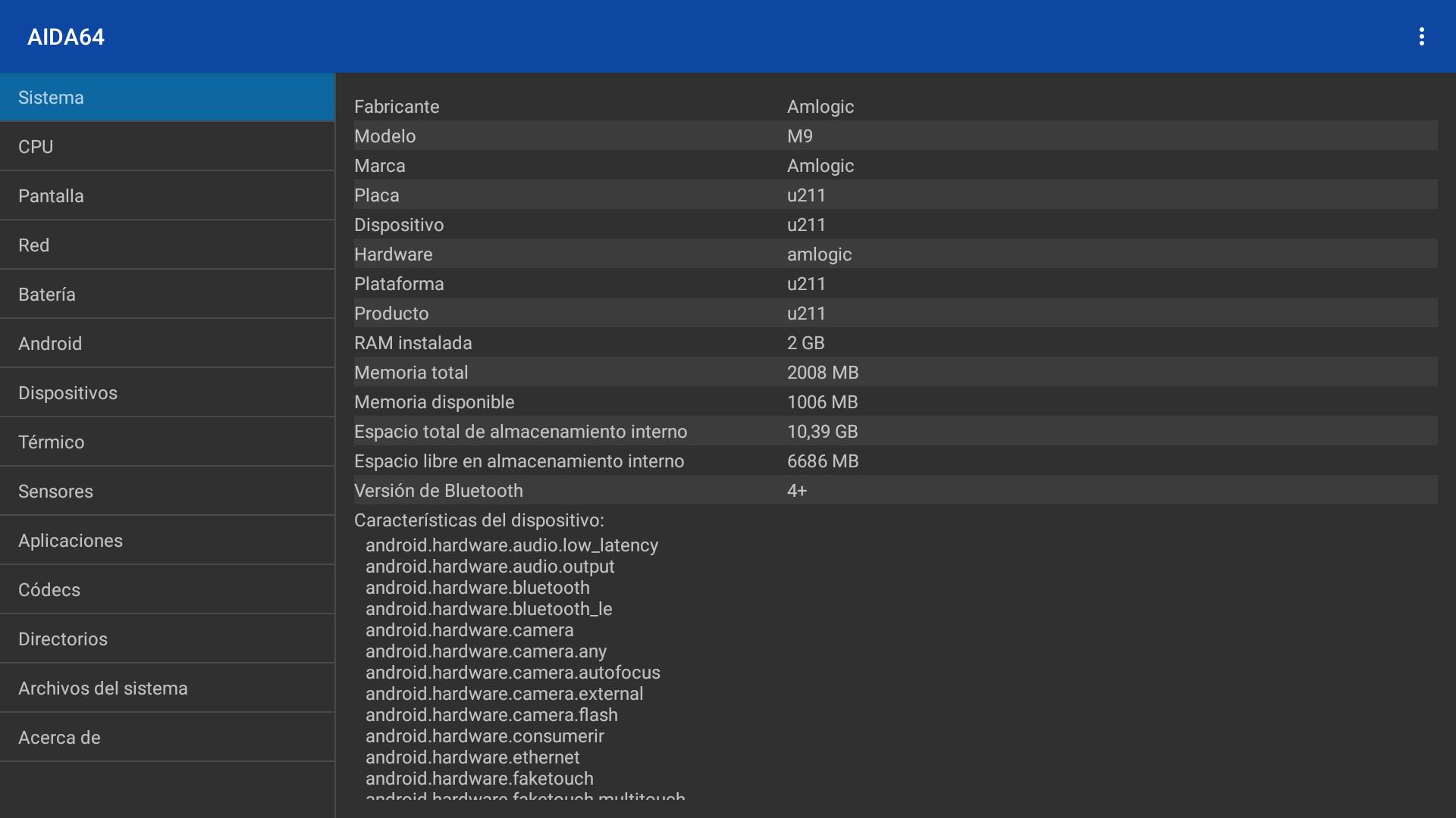 - Version del sistema: Android 9 Pie de 32 bit (no actualizable desde actualizacion desde el menu, version maxima actual)