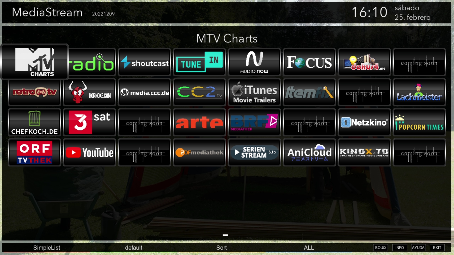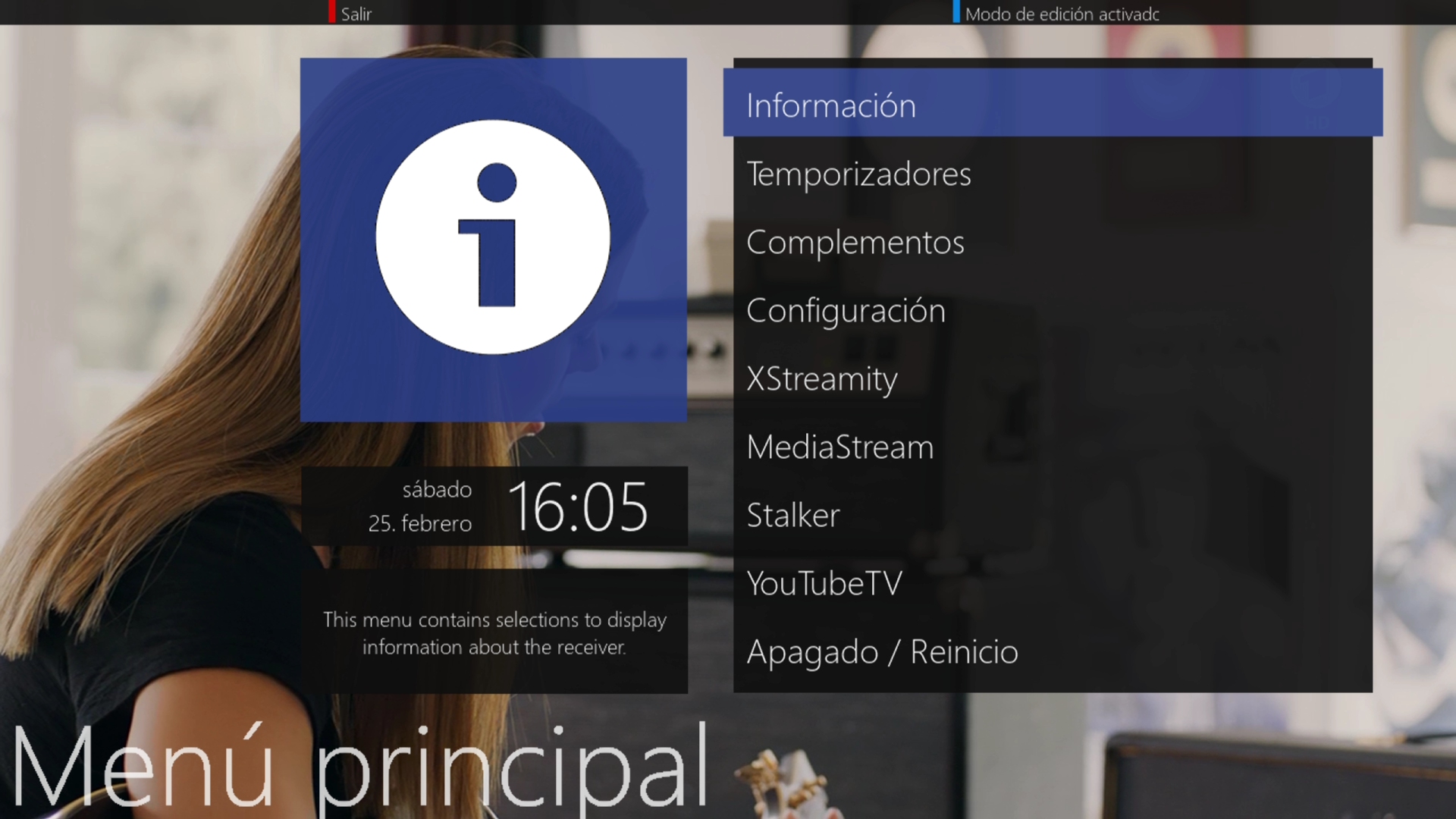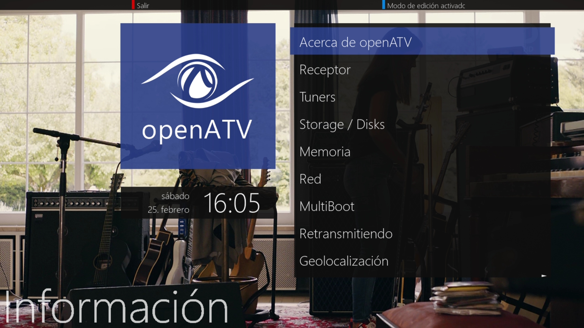 En este caso algunas capturas principales de la imagen OpenATV por defecto:
