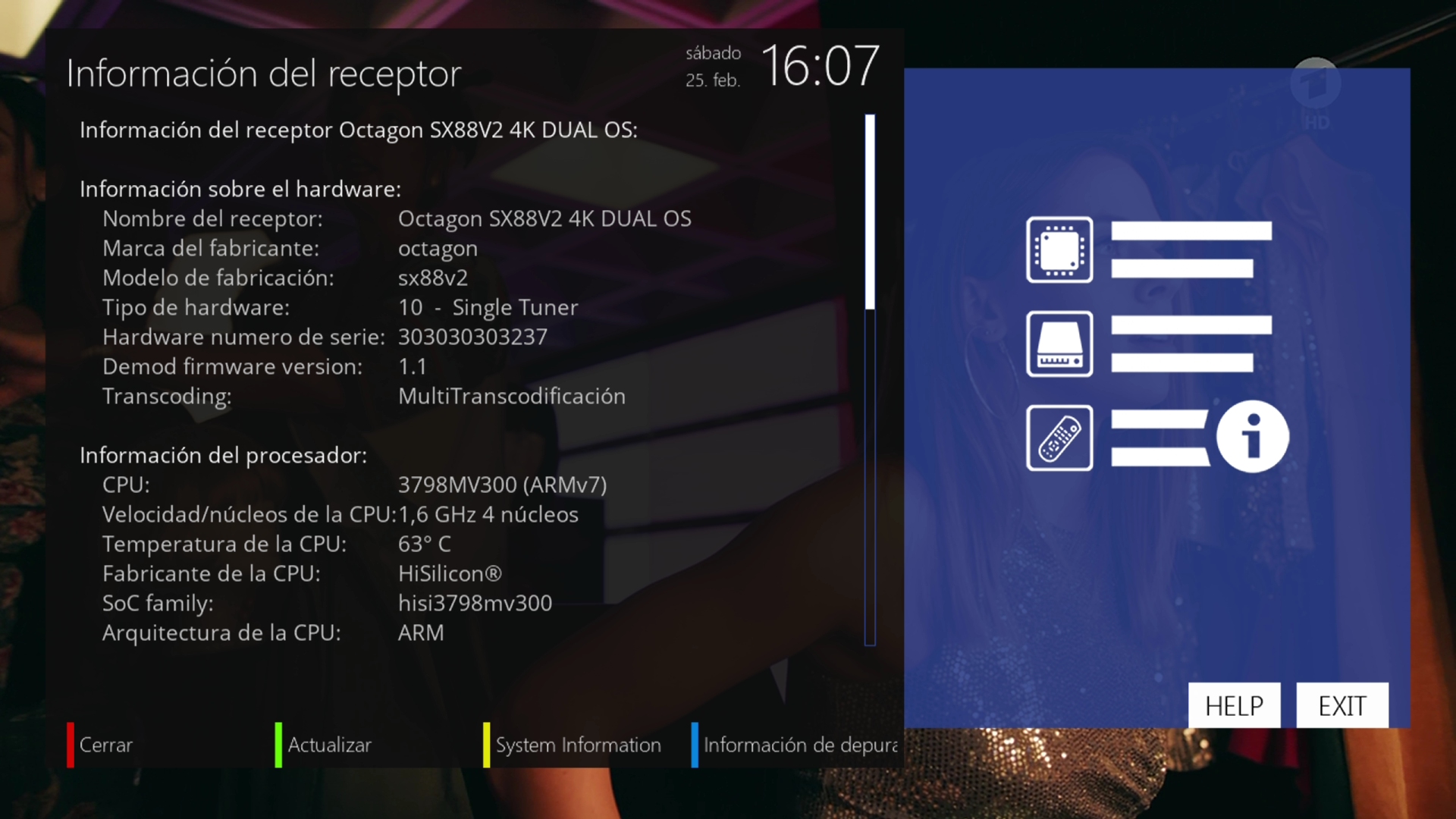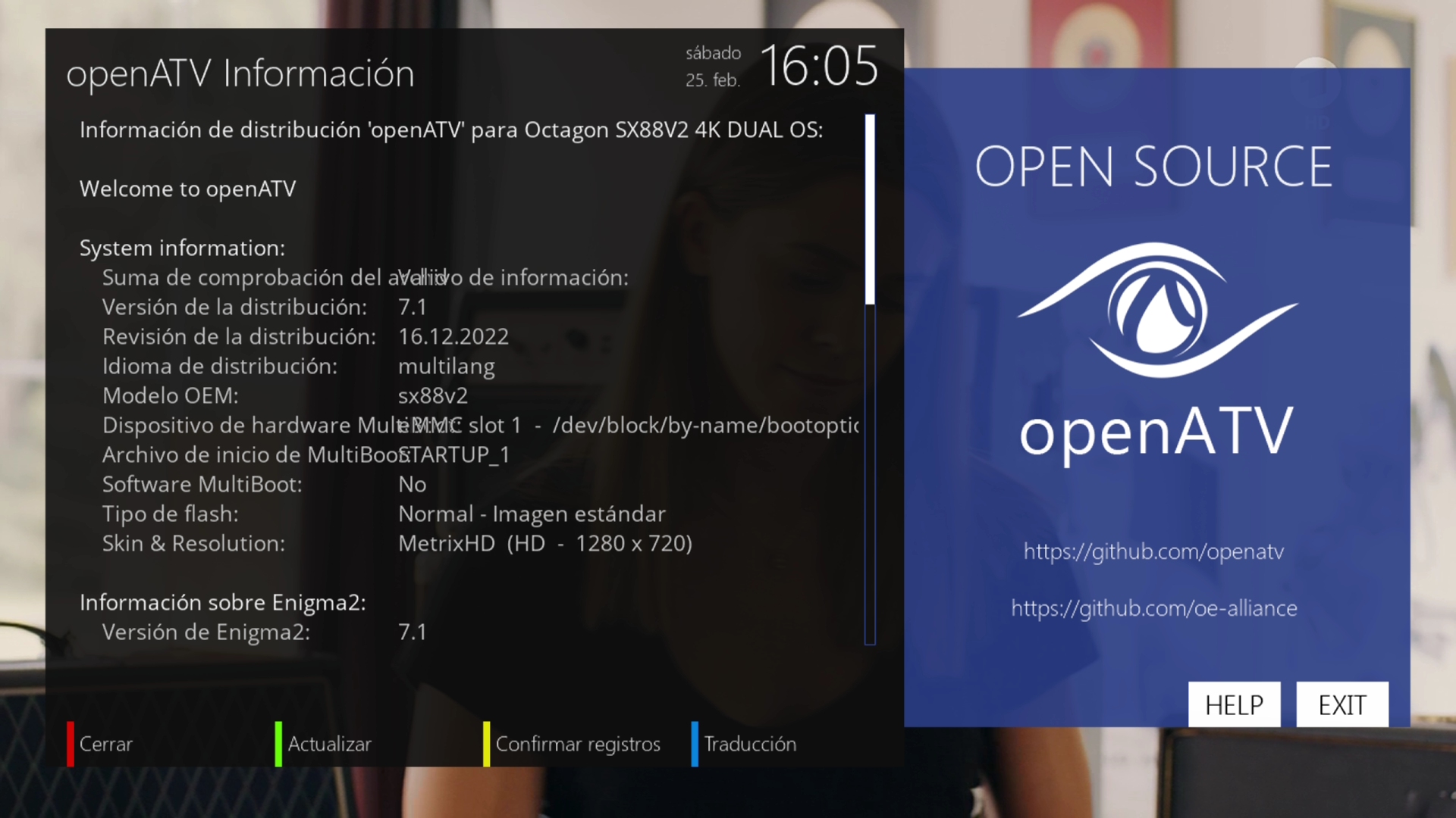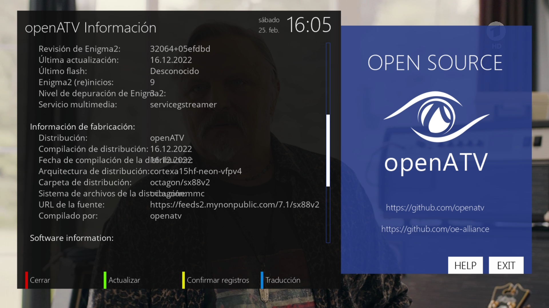 - Version del sistema de fabrica: OpenATV fecha depende de la fabricacion.