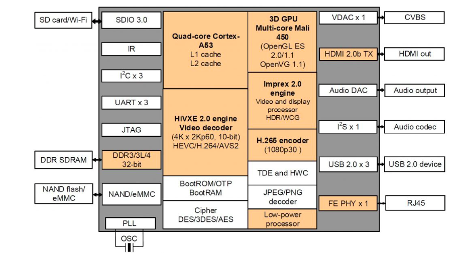Un receptor con nuevo procesador Hisilicon Hi3798MV300 4K a diferencia de los antiguos SF8008 que llevaban HI3798MV200, diagrama de esta version de cpu: