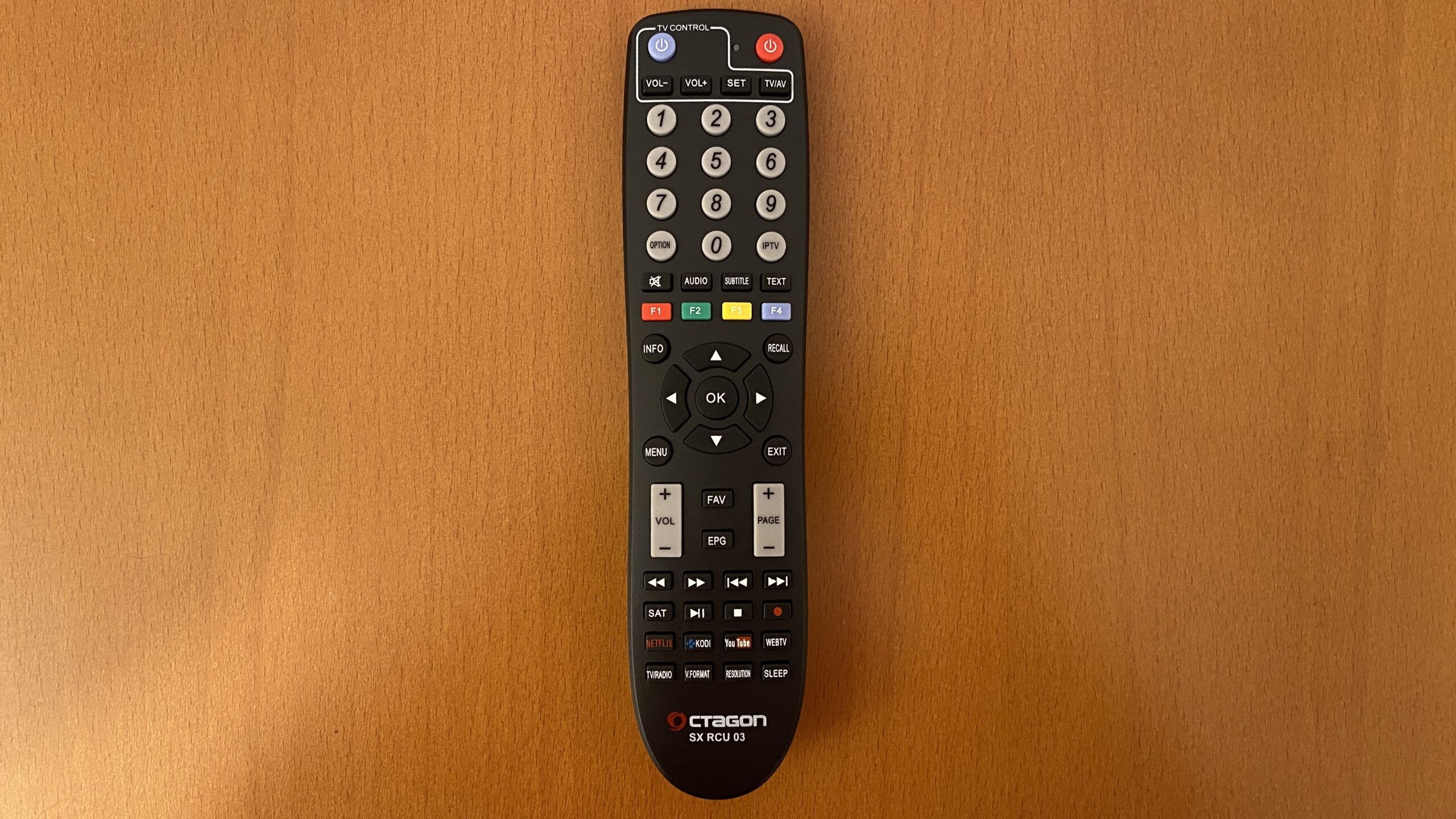 La version del mando del Octagon SX88 V2 con la cual estamos realizando la review es la version moderna del fabricante, sensacion de botonera tipo mecanica, robusto, con funcion TV programable.