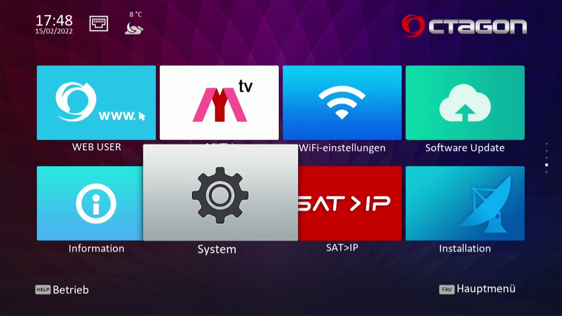 Conectamos el Octagon SX88 V2 al adaptador de corriente y se inicia el receptor, cambiando el leed luminoso de rojo a azul, este proceso dura aproximadamente 34 segundos hasta que comienza la configuracion basica de la imagen enigma2 por defecto que en este caso es OpenATV. El sistema se mueve de forma fluida, gracias a su cpu hisilicon y 1 gb de ram que para enigma2 es mas que suficiente.