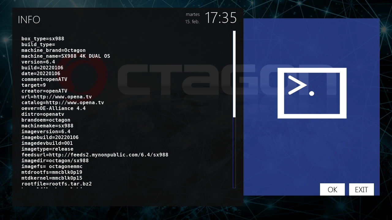 En términos de potencia, el Octagon SX988 4K tiene resultados muy buenos y mueve el sistema enigma2 correctamente , podemos ejecutar los plugins básicos sin ningún problema.