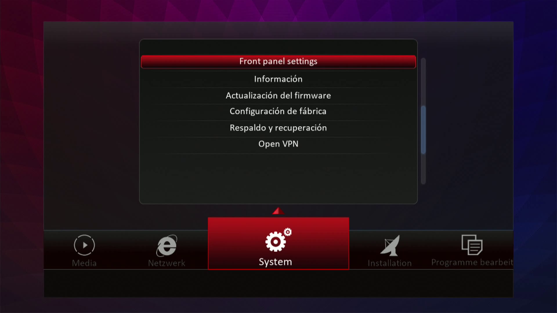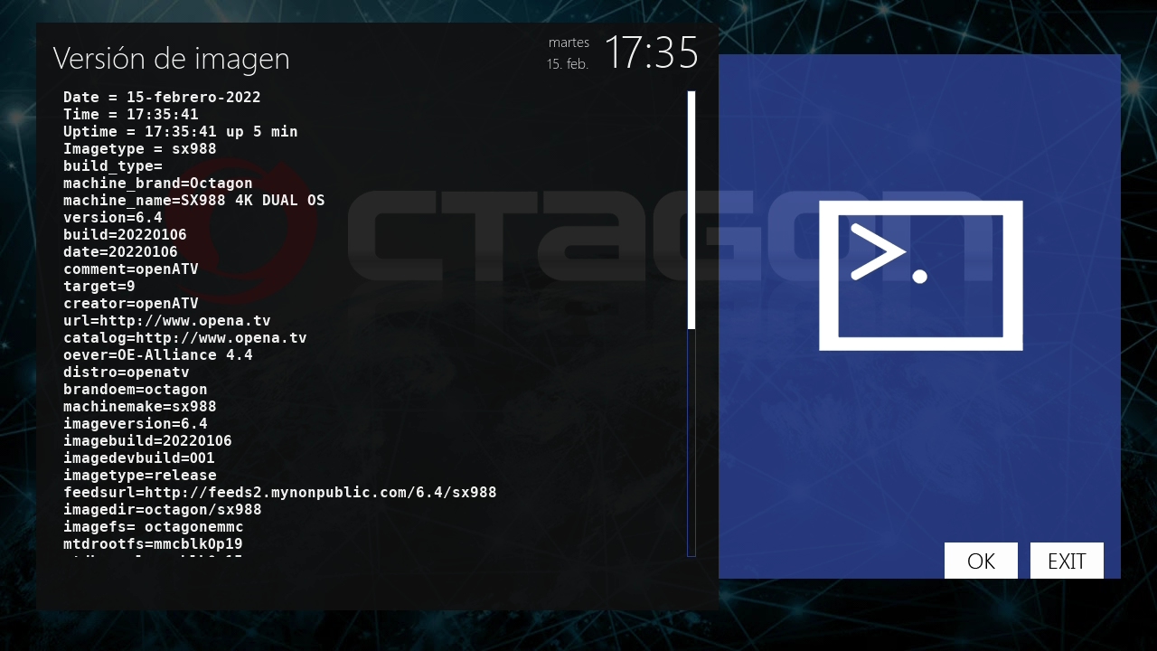 - Version del sistema de fabrica: OpenATV fecha depende de la fabricacion.