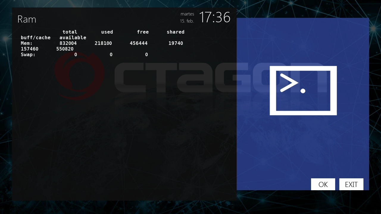 El sistema Enigma2 Reserva parte de los 1 GB de ram para sus procesos internos en esta captura podemos ver como se reparte: