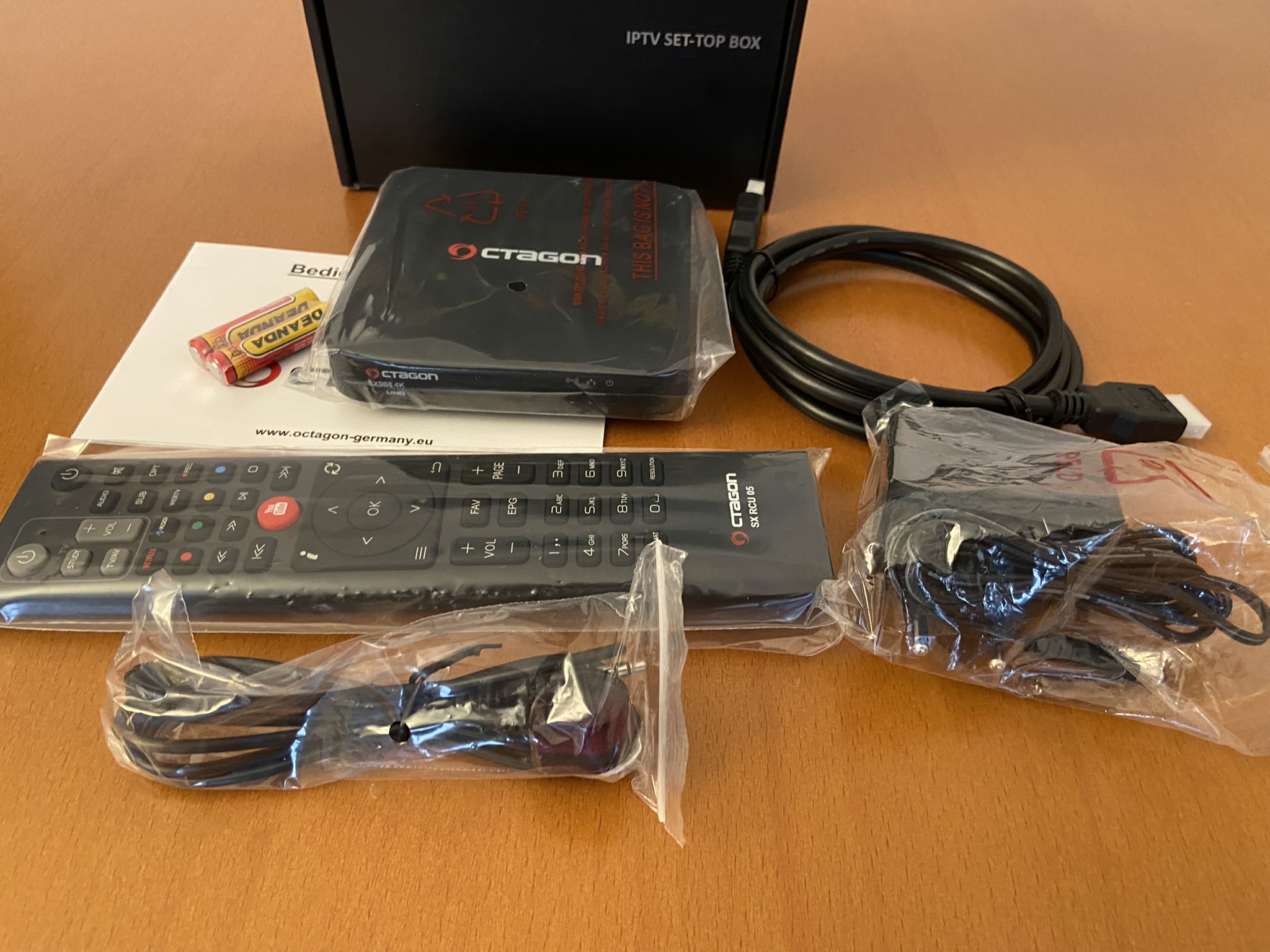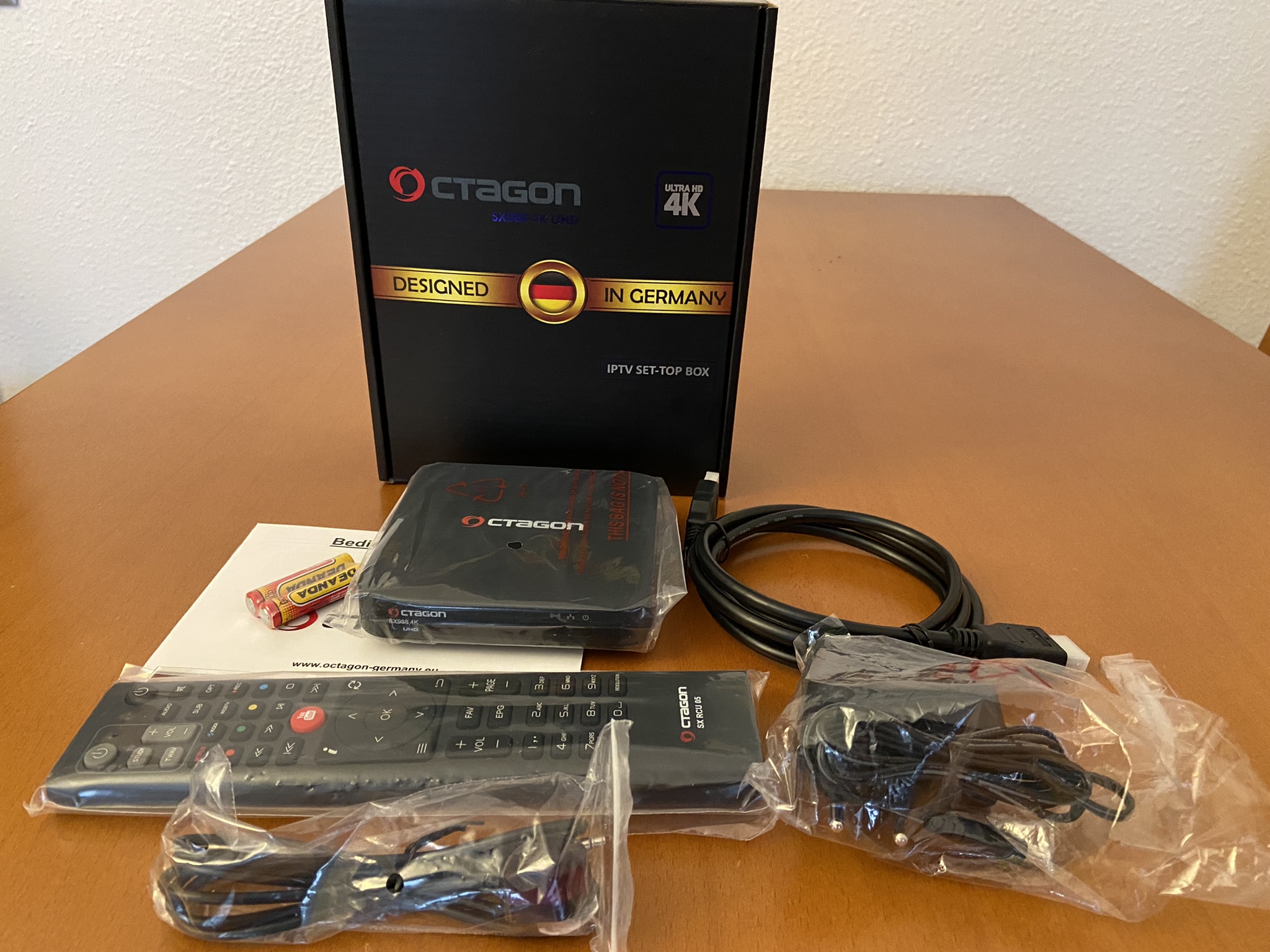 Octagon SX988 4K se presenta en una caja de carton tipica, en colores negros, de bastante buena calidad, y en su interior nos encontramos: