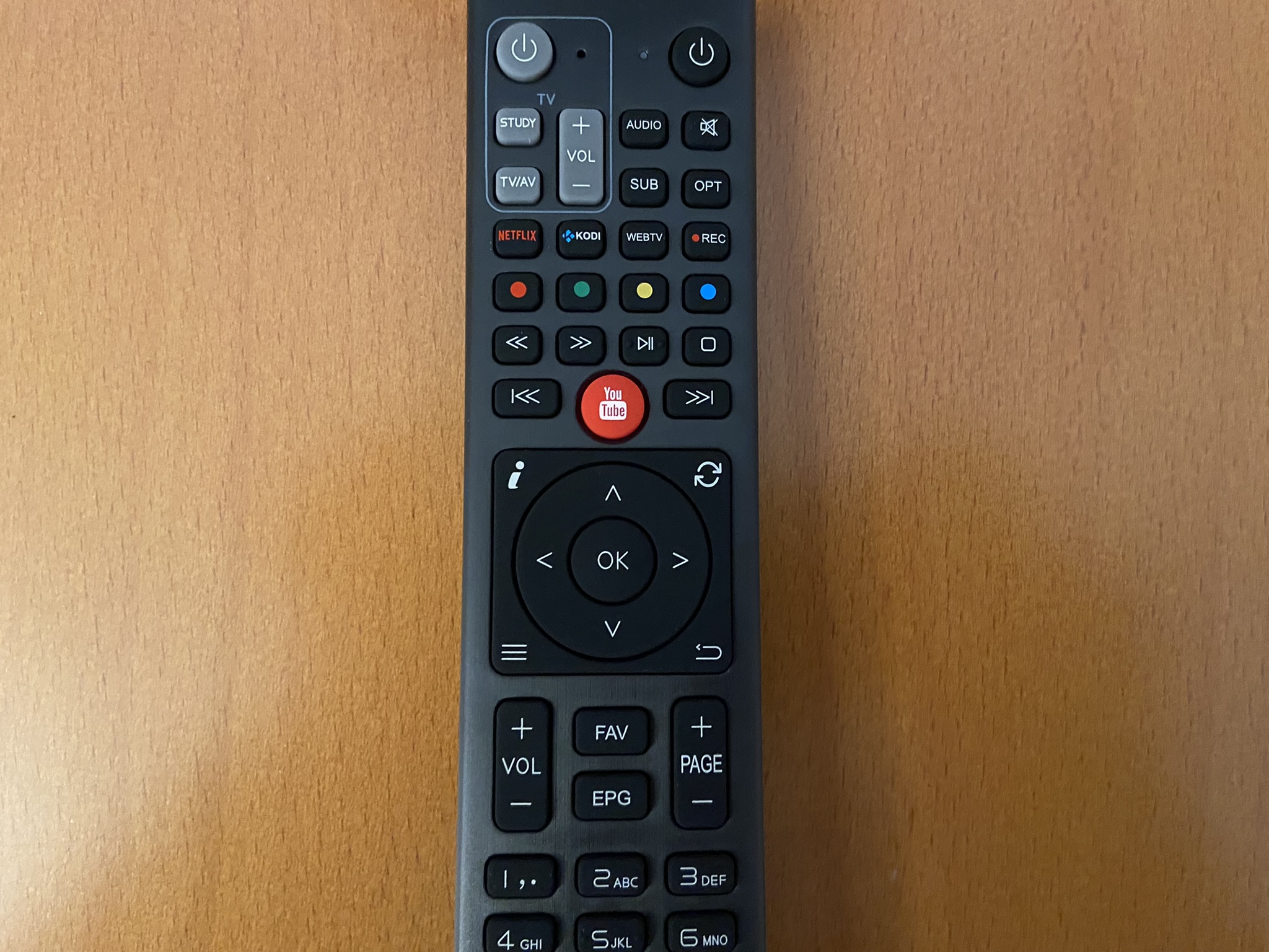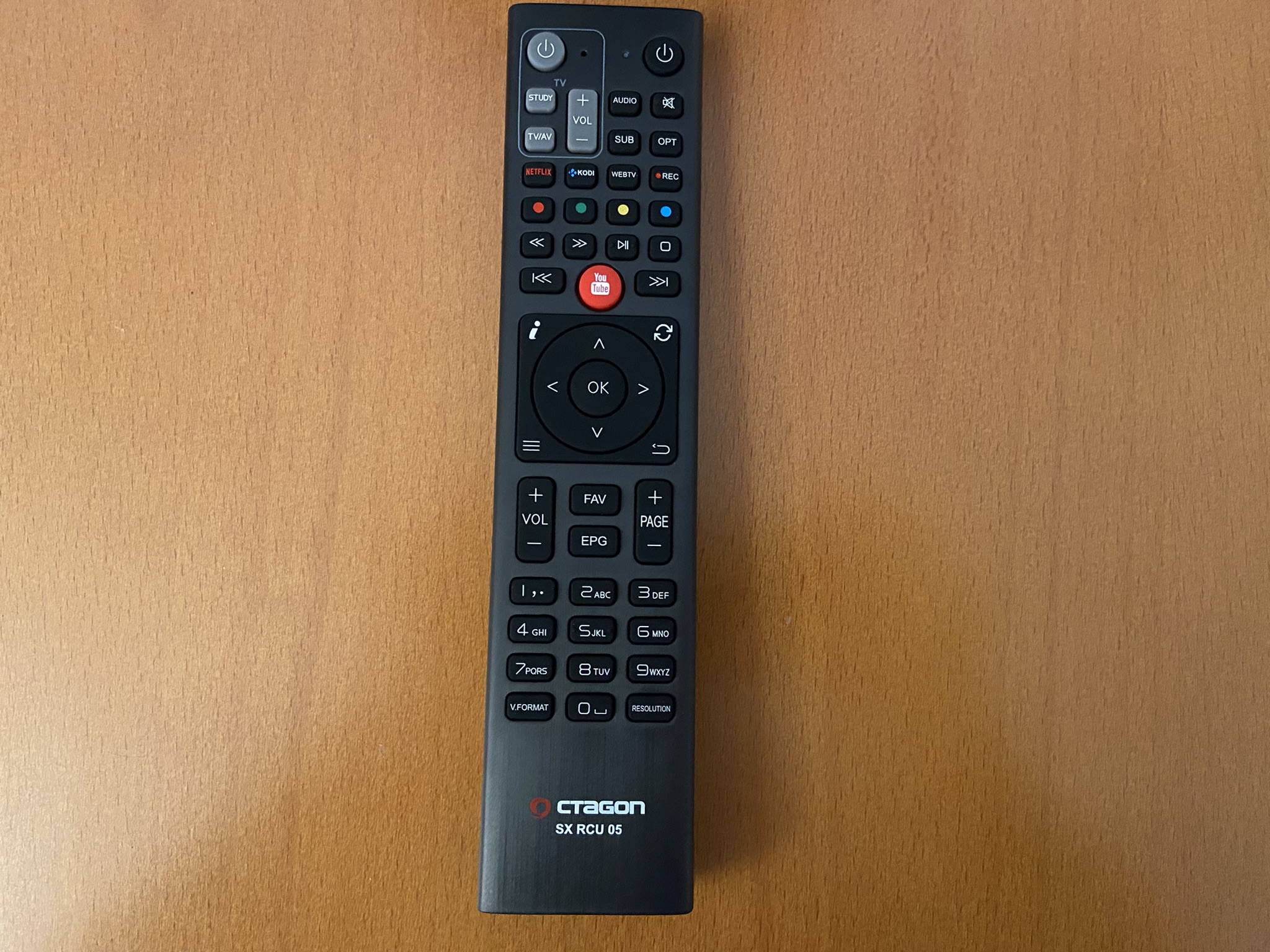El mando a distancia del Octagon SX988 4K es un tamaño que se adapta a la mano y bastante agradable al tacto, siendo las pulsaciones tipo mecanicas, en general responde perfectamente a las pulsaciones y es comodo en su uso.