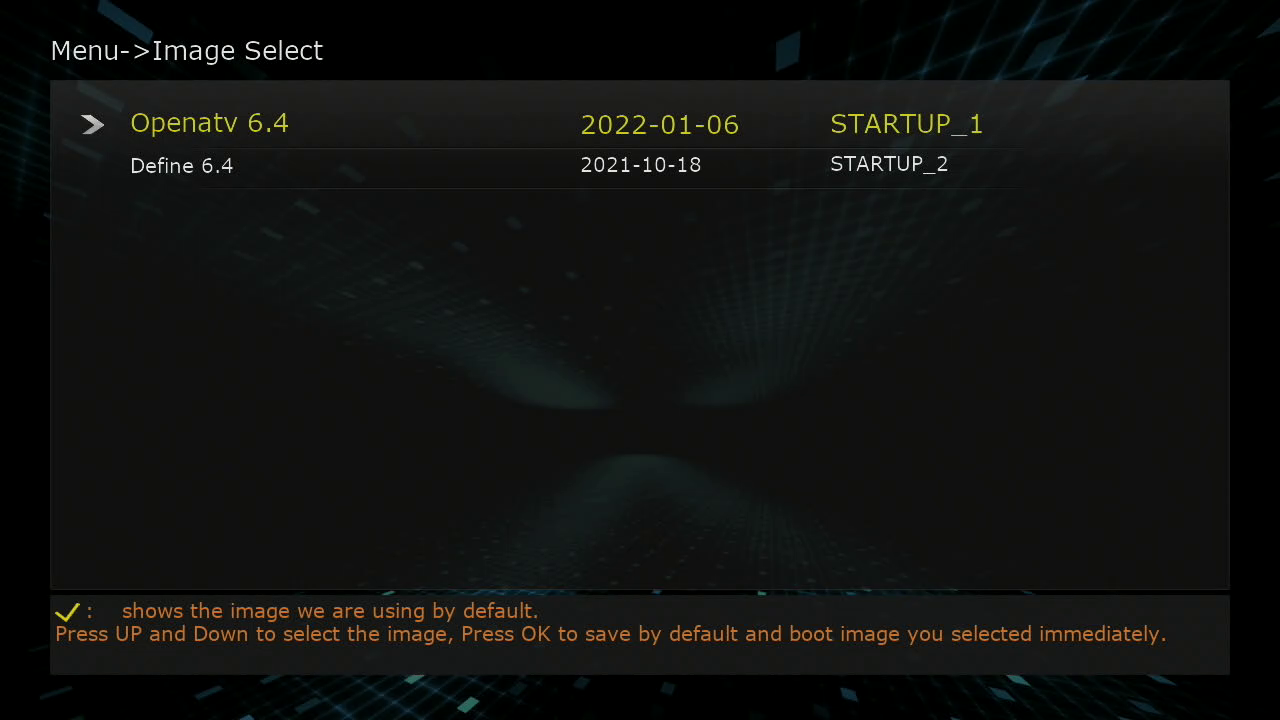 Al arrancar el Octagon SX988 4K podemos seleccionar el arranque recovery donde podemos seleccionar el arranque del receptor con imagen Define Sat linux cerrado del fabricante: