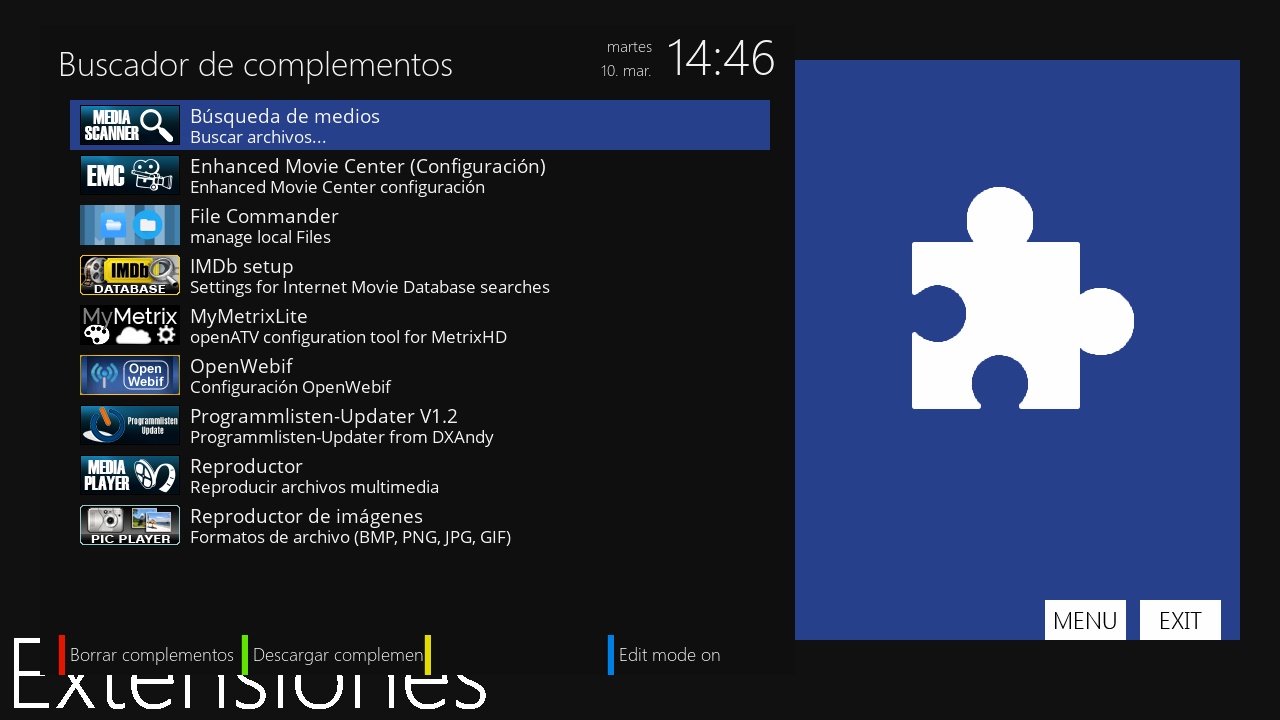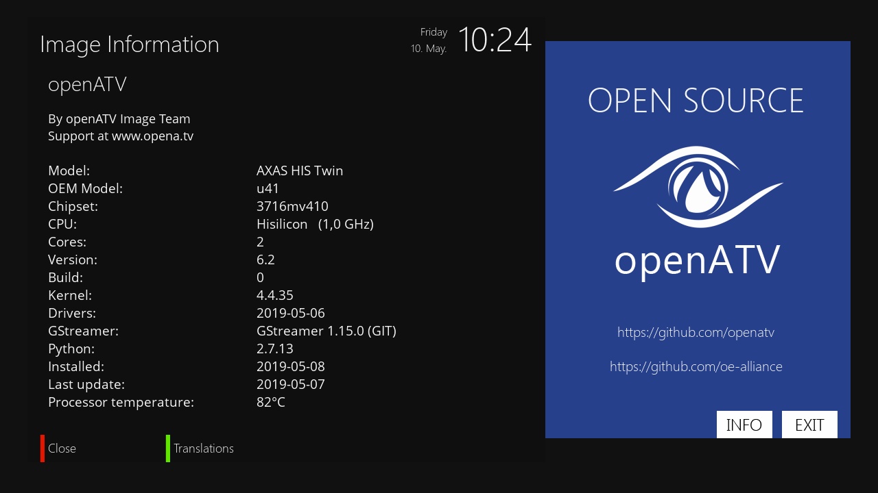 - Version del sistema de fabrica: openatv 6.2 de Mayo del 2019