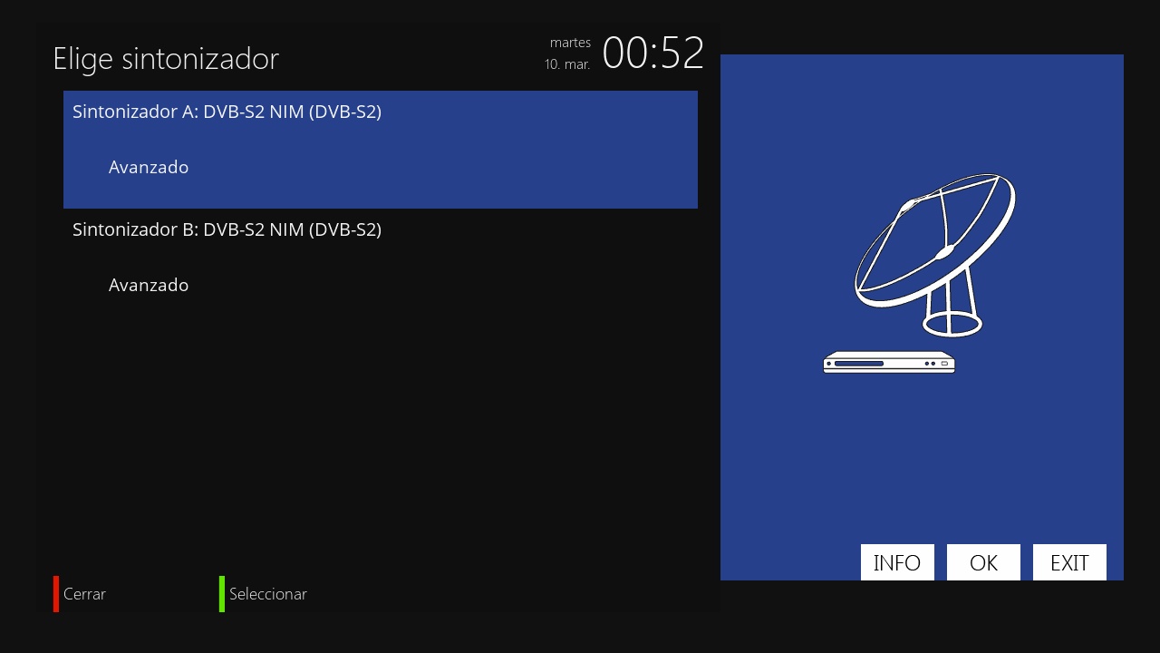 Aunque es doble tuner no funciona en la actualidad ni el loop interno ni externo, por lo que nos obliga a usar dos lnb o lnb unicable para poder funcionar con ambos tuner.