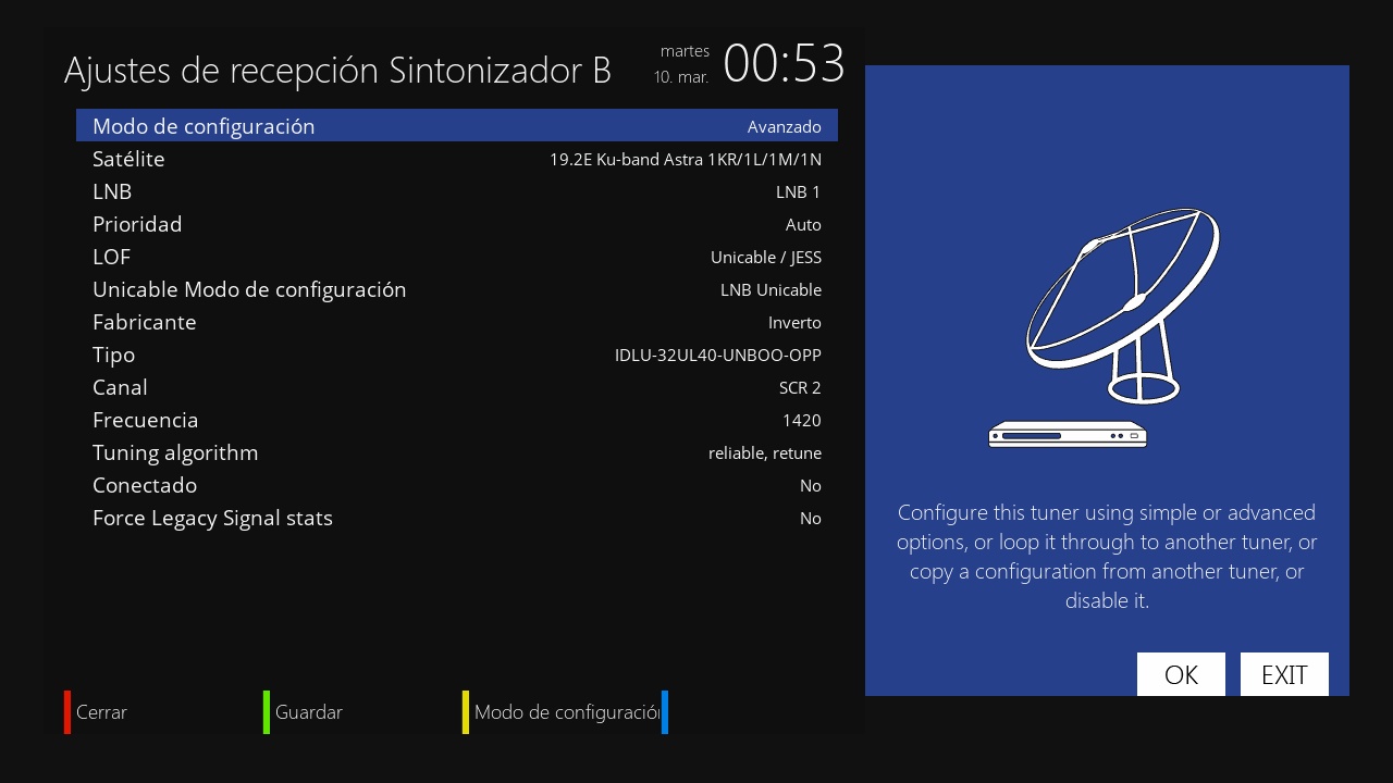 En este caso realizamos una configuracion de ambos tuner con lnb unicable