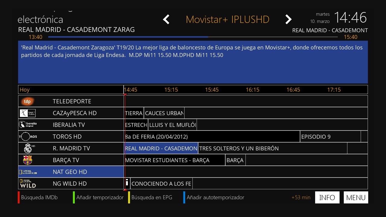 - Gestión de canales: Lista en vivo con búsqueda por nombre, EPG, Favoritos y gestor para programar grabaciones.