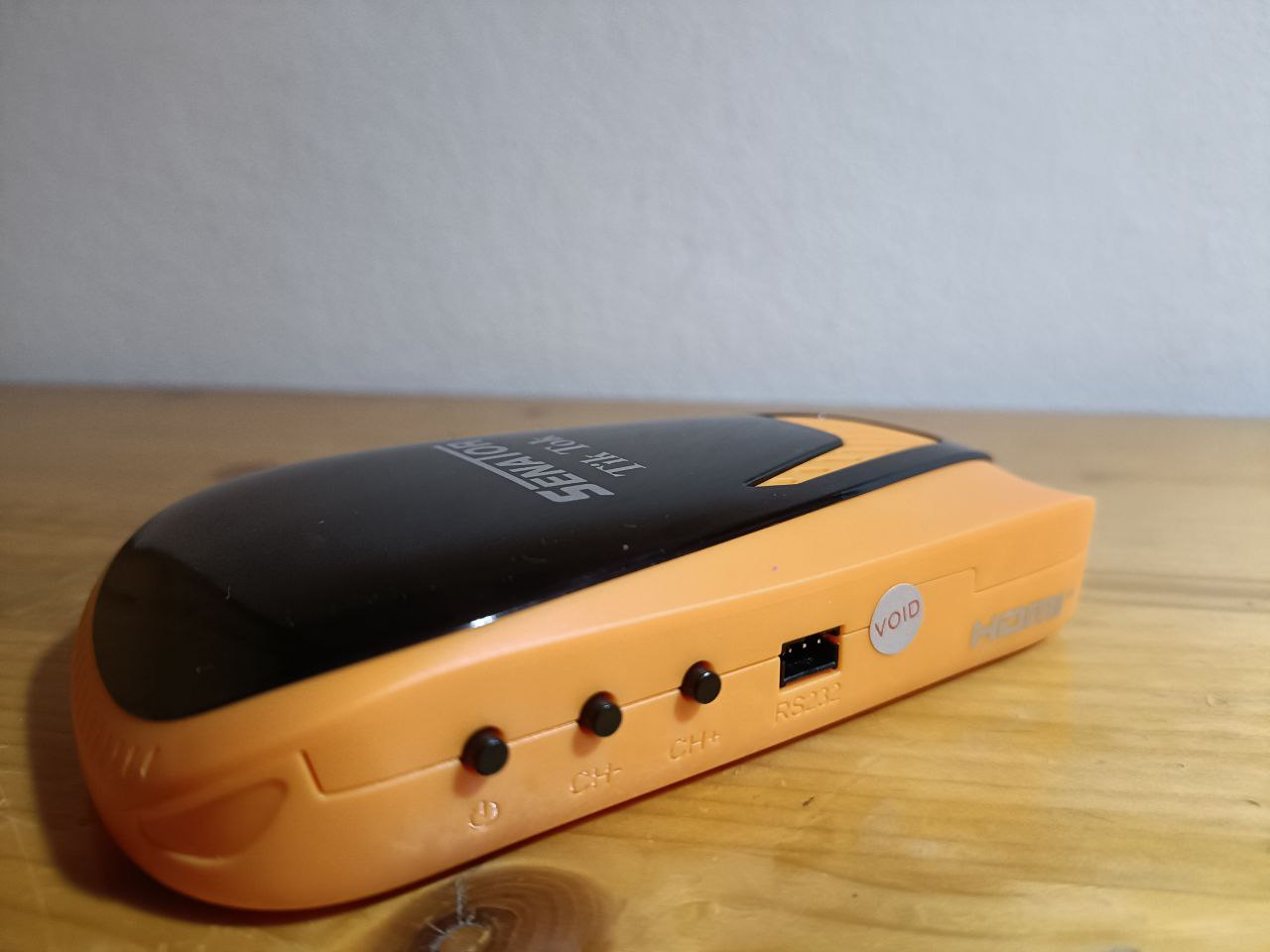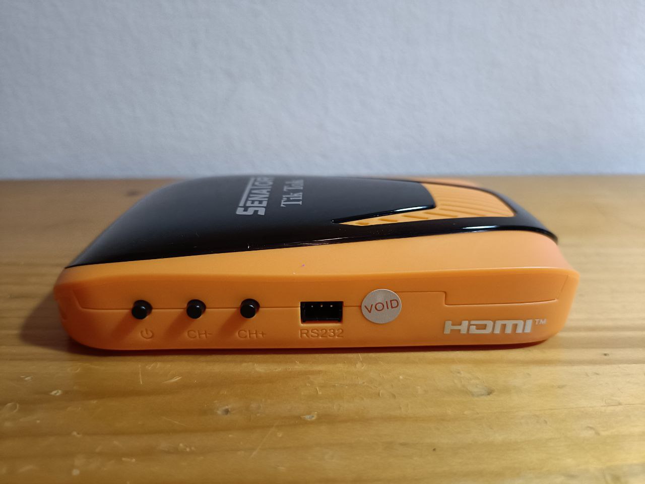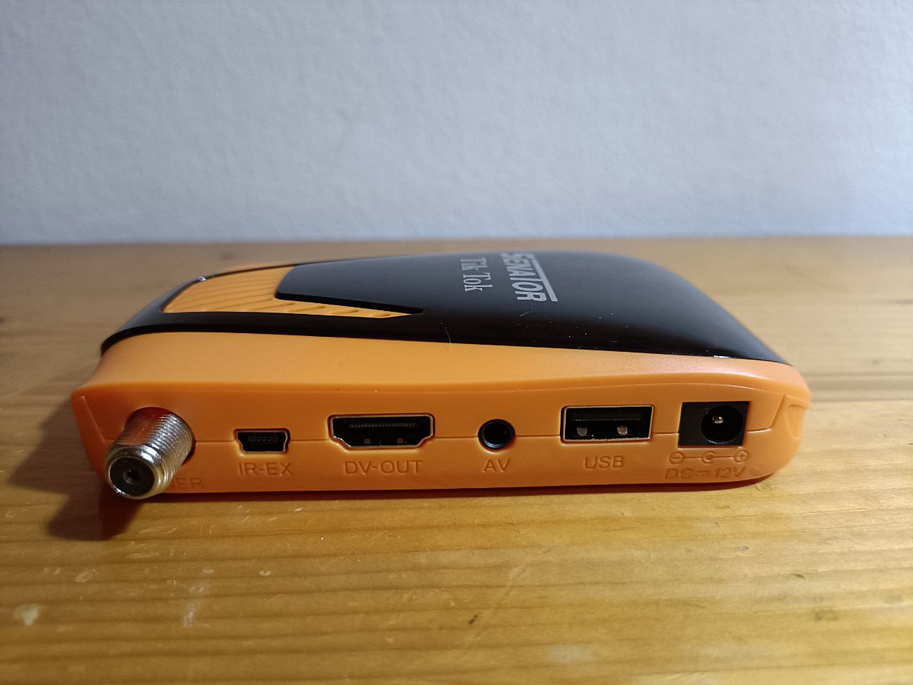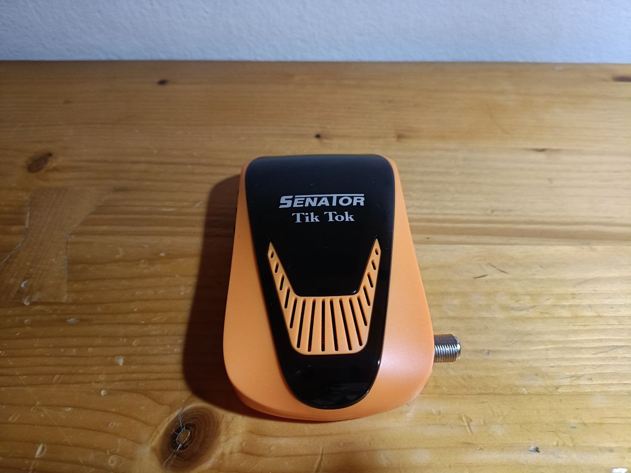 Senator Tik Tok forever tiene un diseño rectagular con bordes redondeadas, en color naranja/negro y serigrafiado en su parte superior el modelo de la marca, en este caso estariamos hablando de un receptor de pequeñas dimensiones.